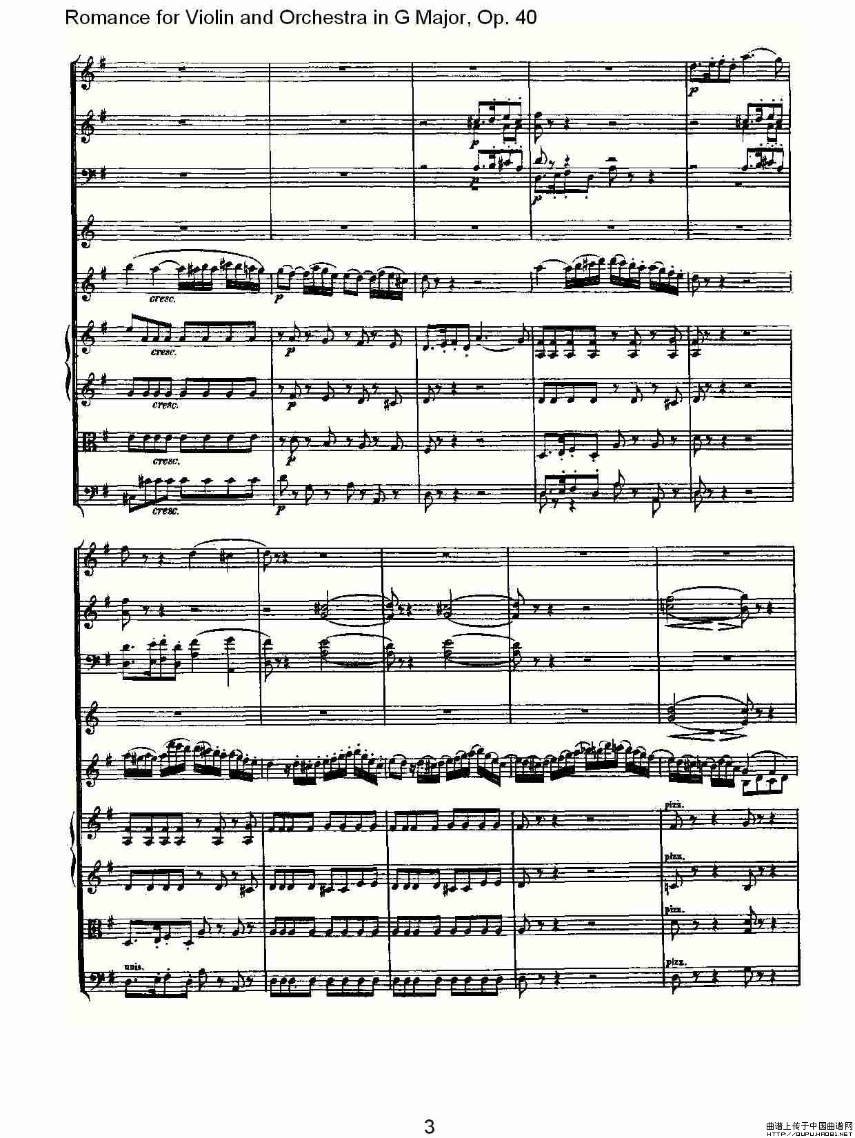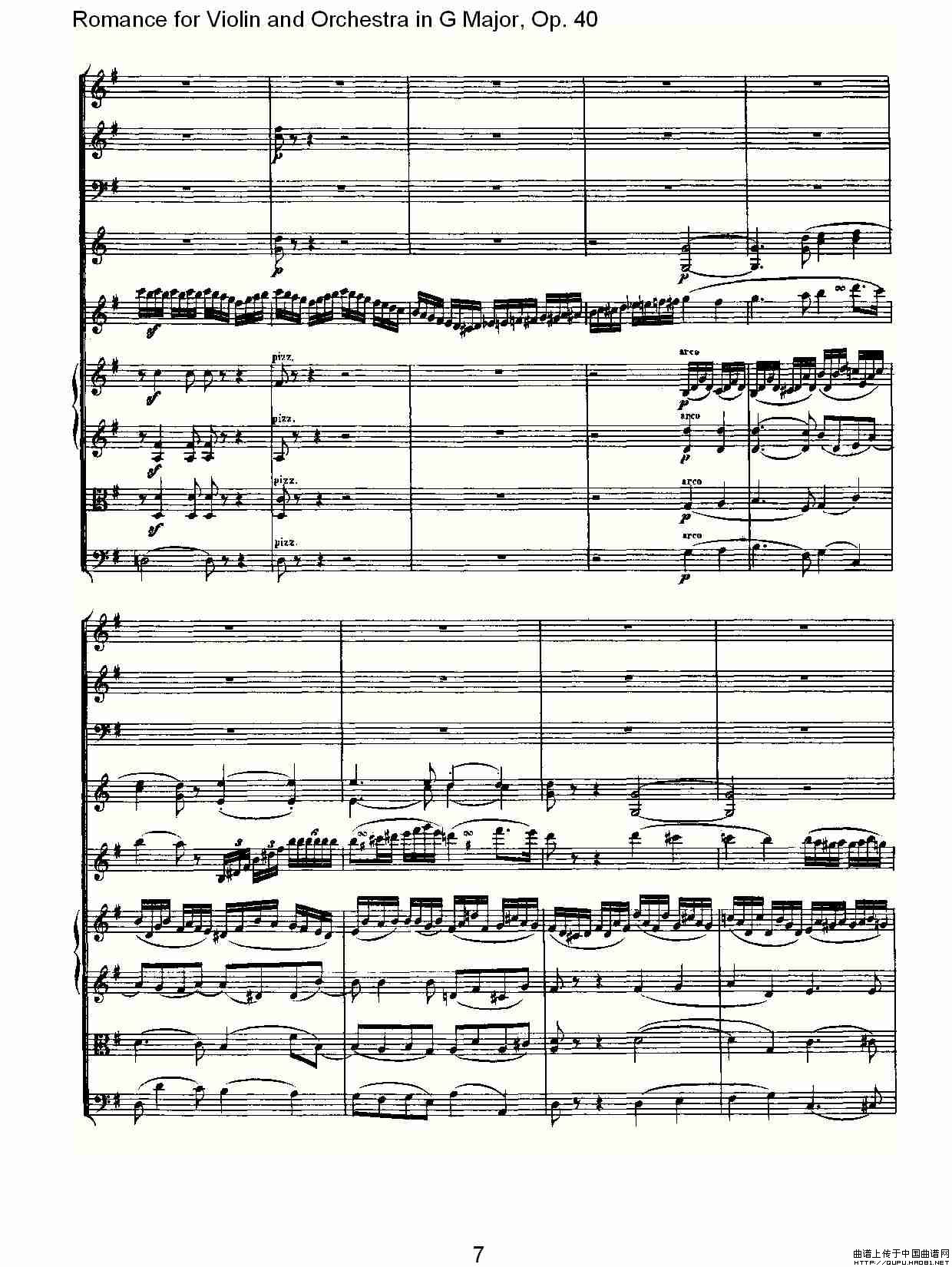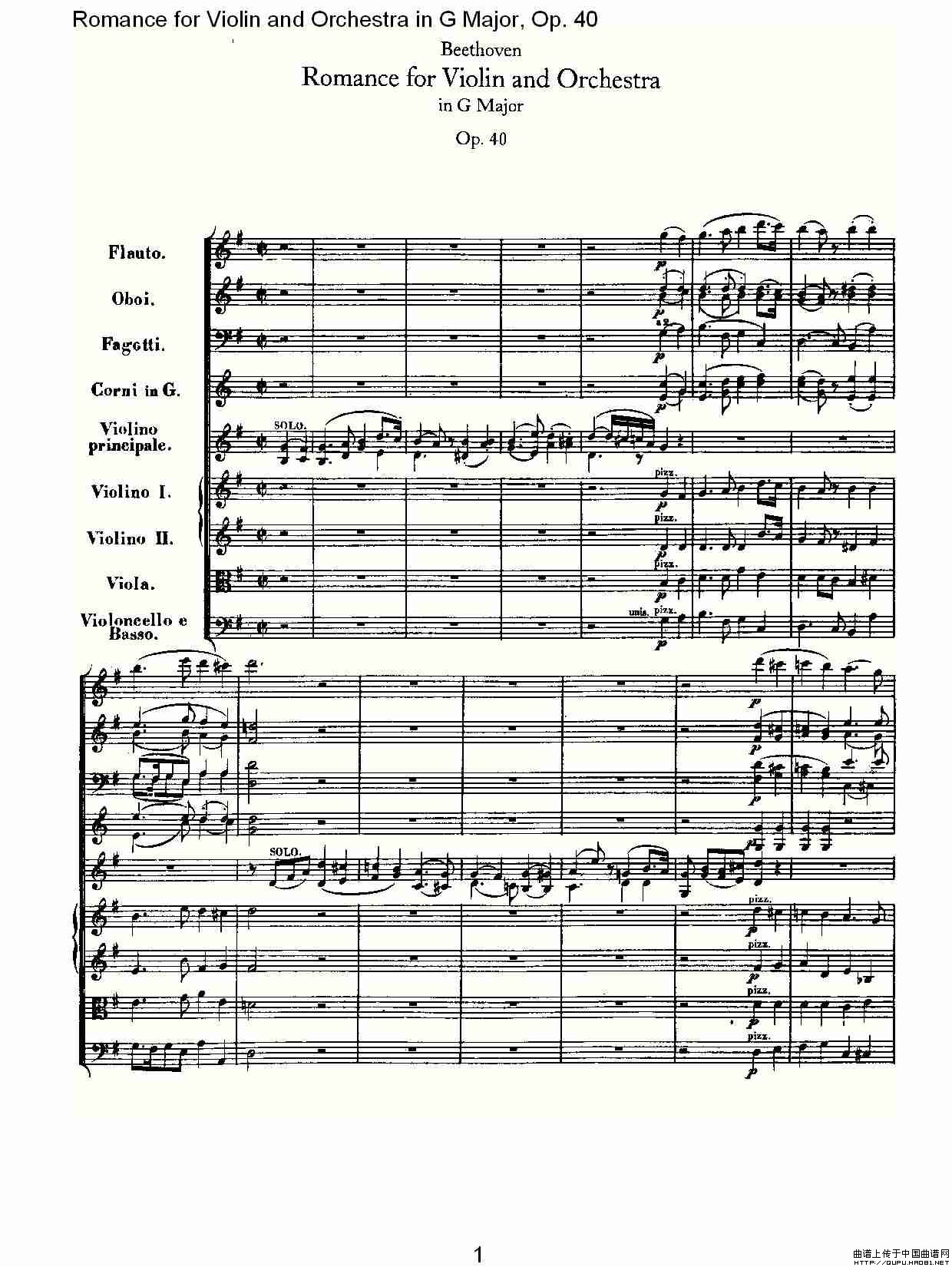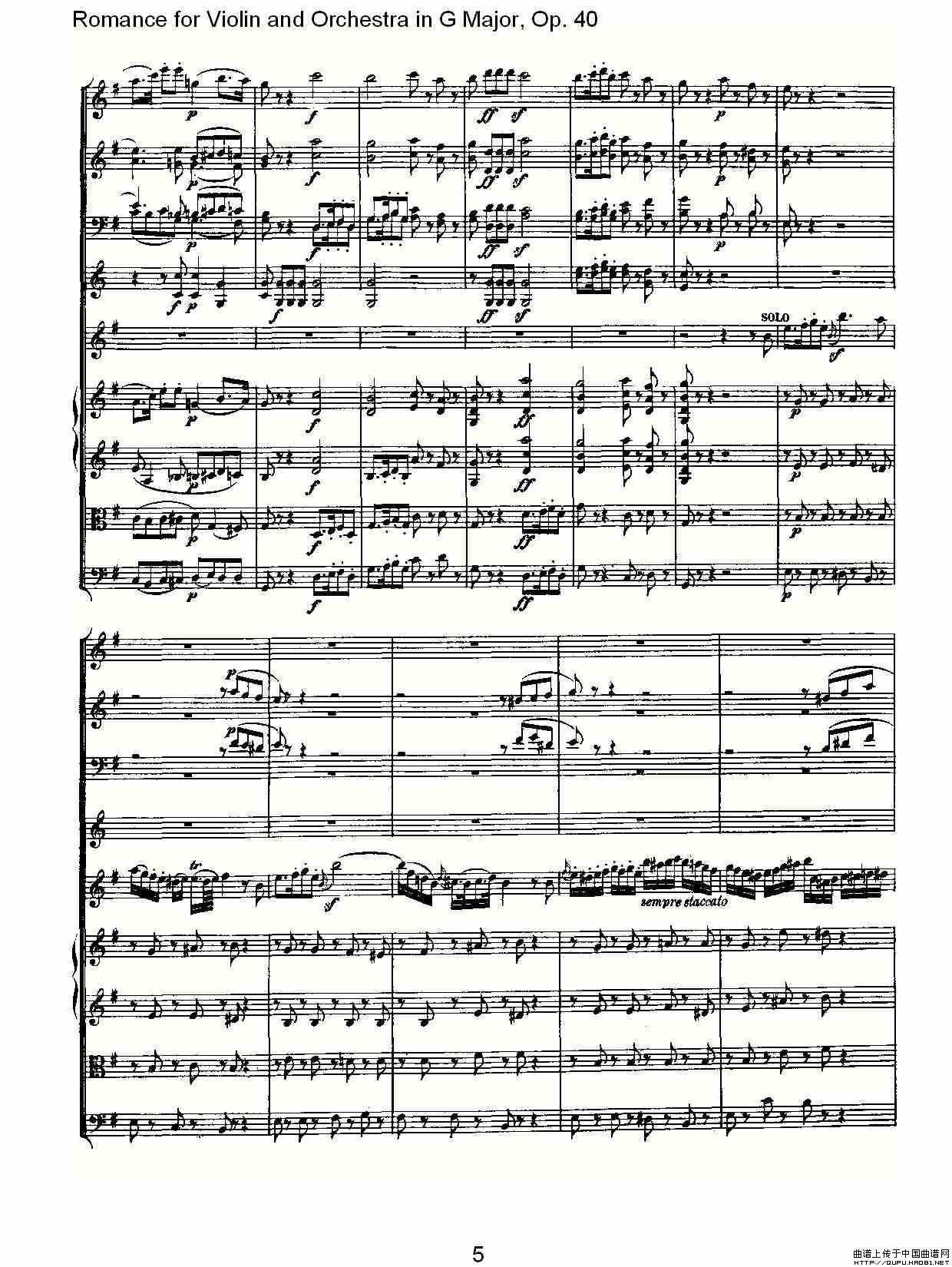 G小调小提琴与管弦乐罗曼曲Op.40相关五线谱