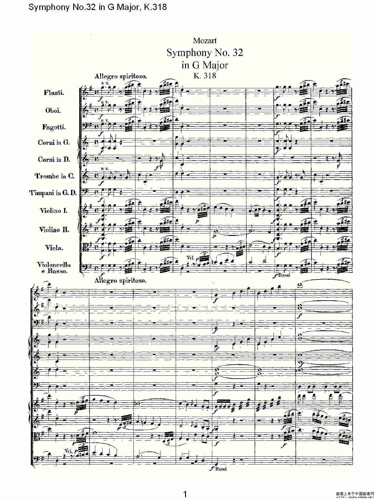 Symphony No.32 in G Major, K.318(G大调第三十二交响曲K.318)相关五线谱