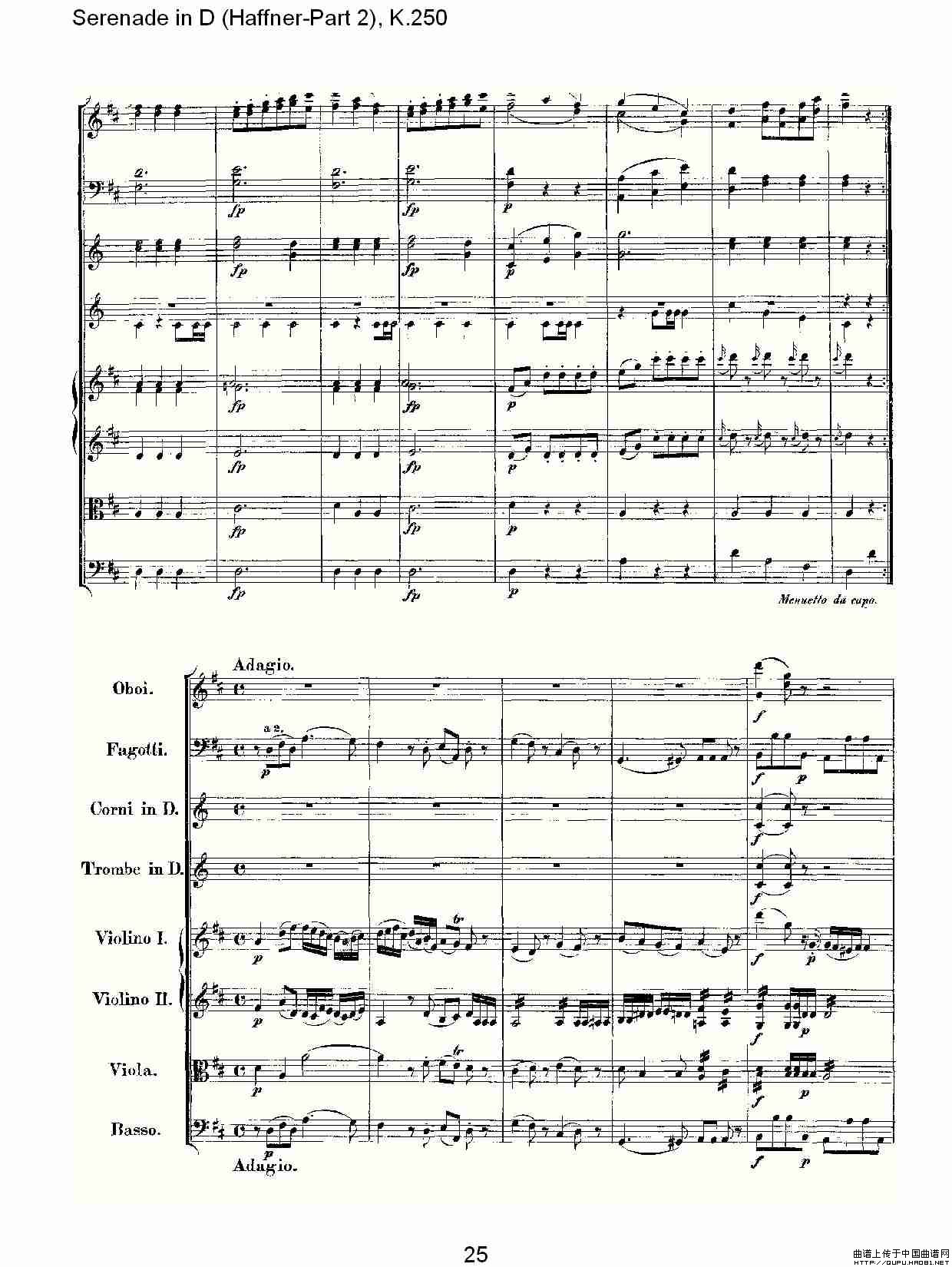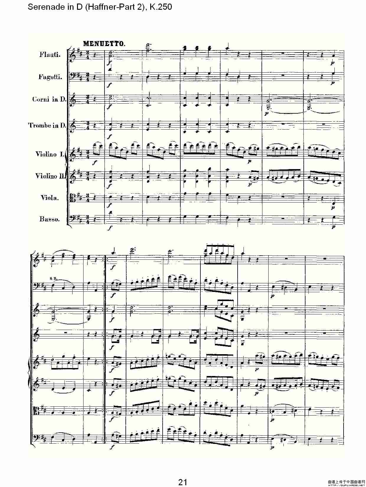 Serenade in D(Haffner-Part 2), K.250 D调小夜)相关五线谱