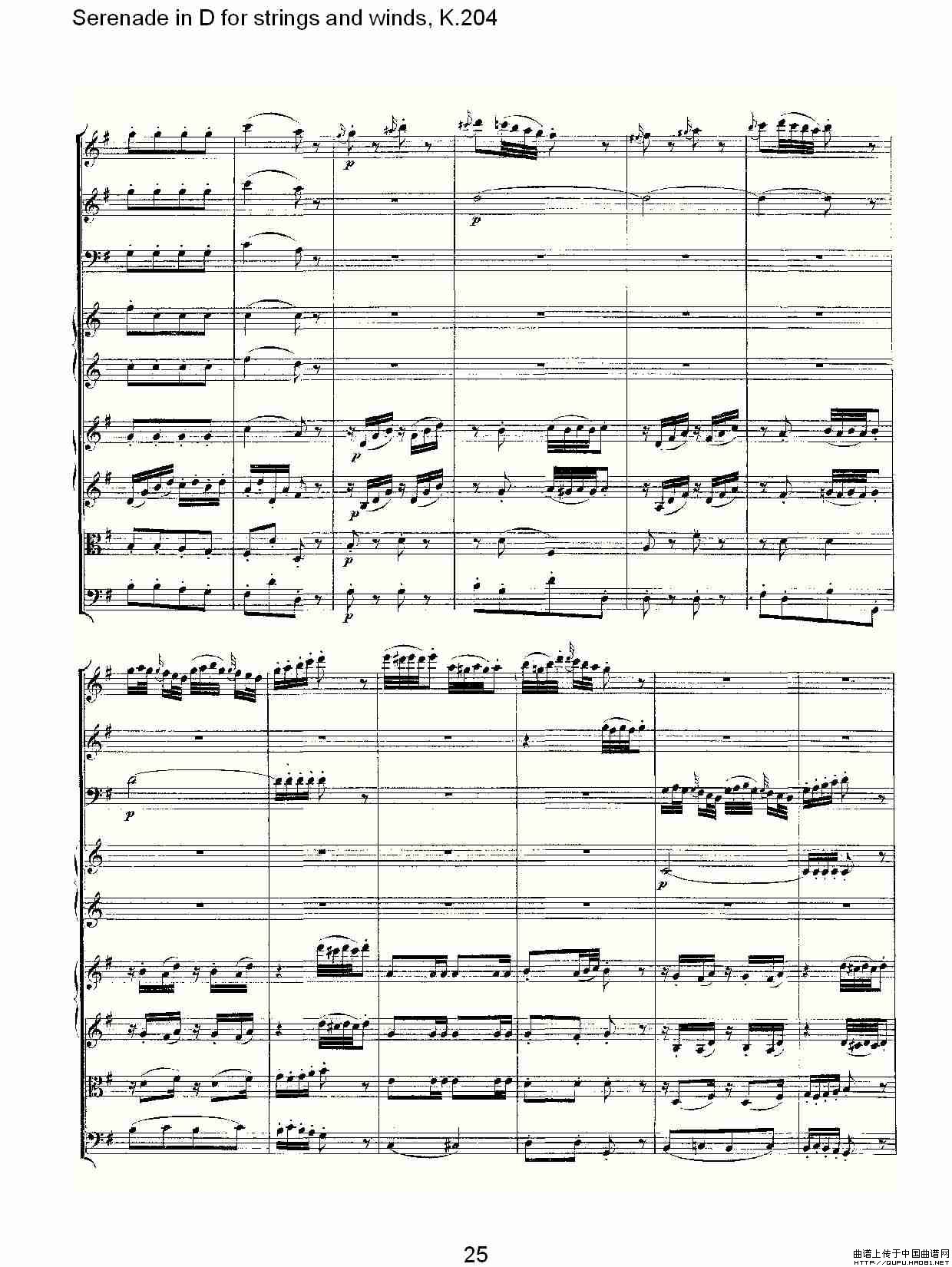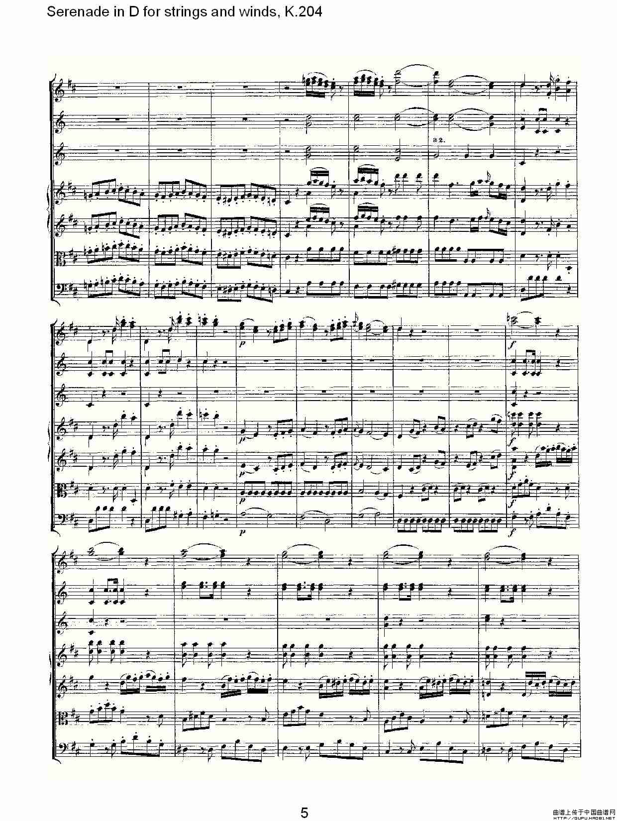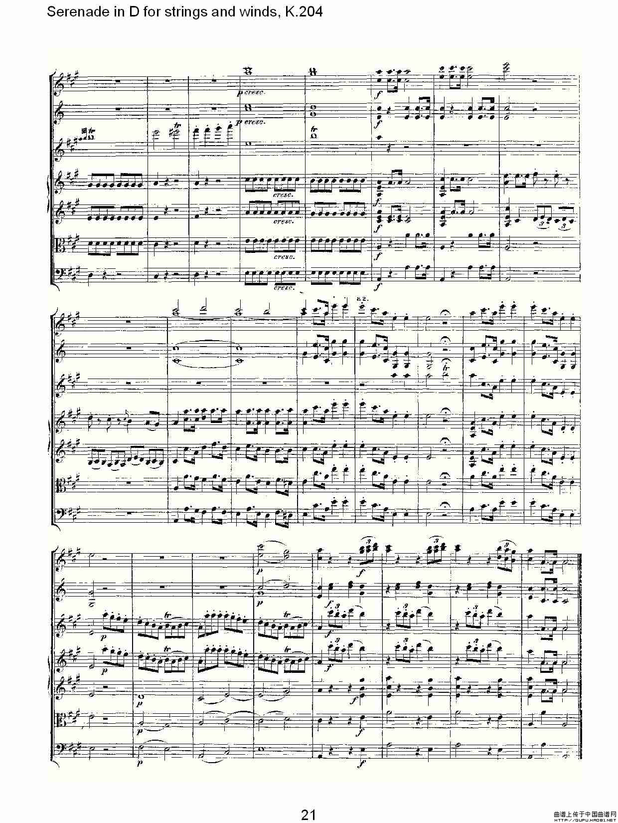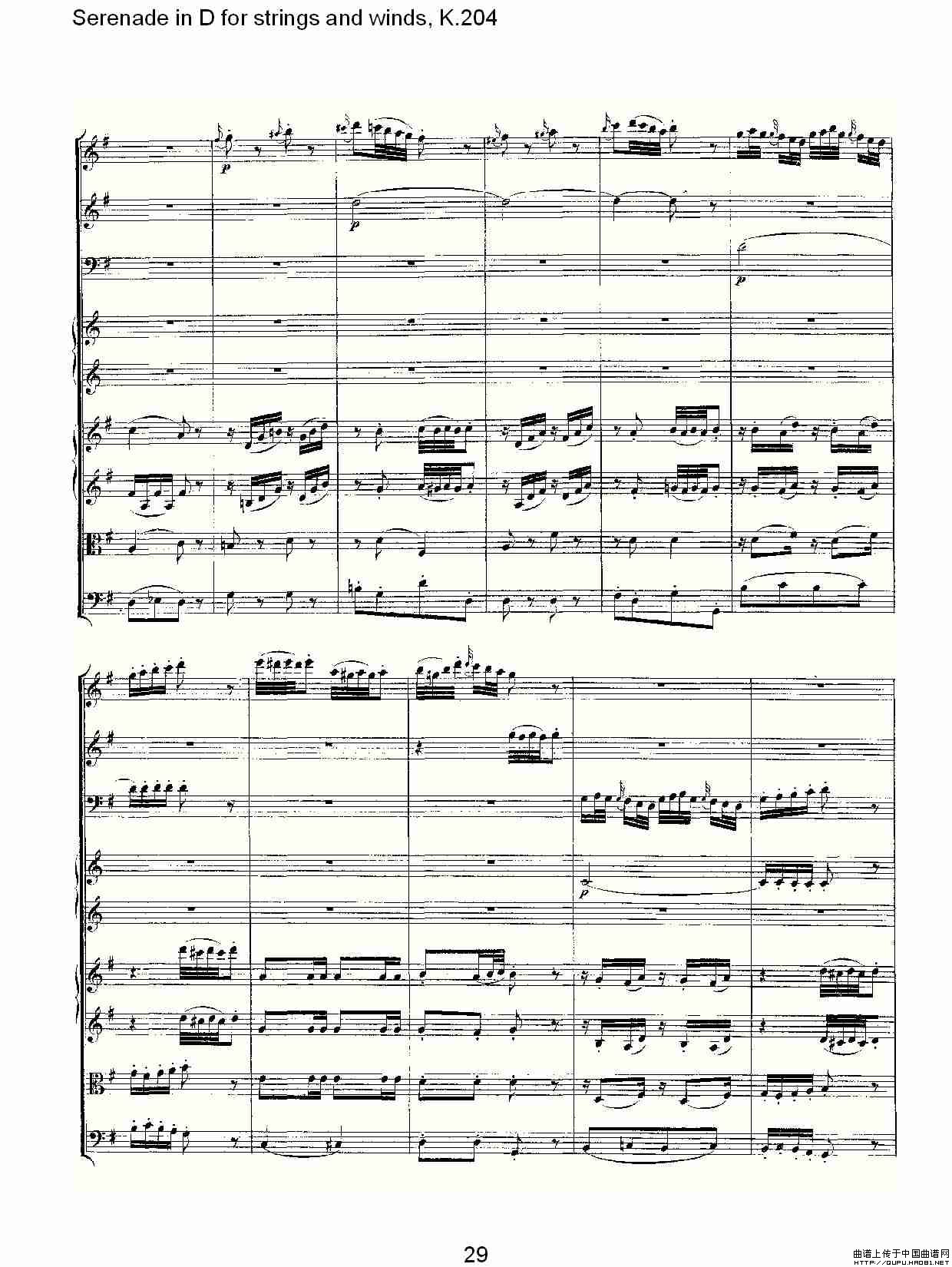 Serenade in D for strings and winds, K.204(D调管弦乐小)相关五线谱