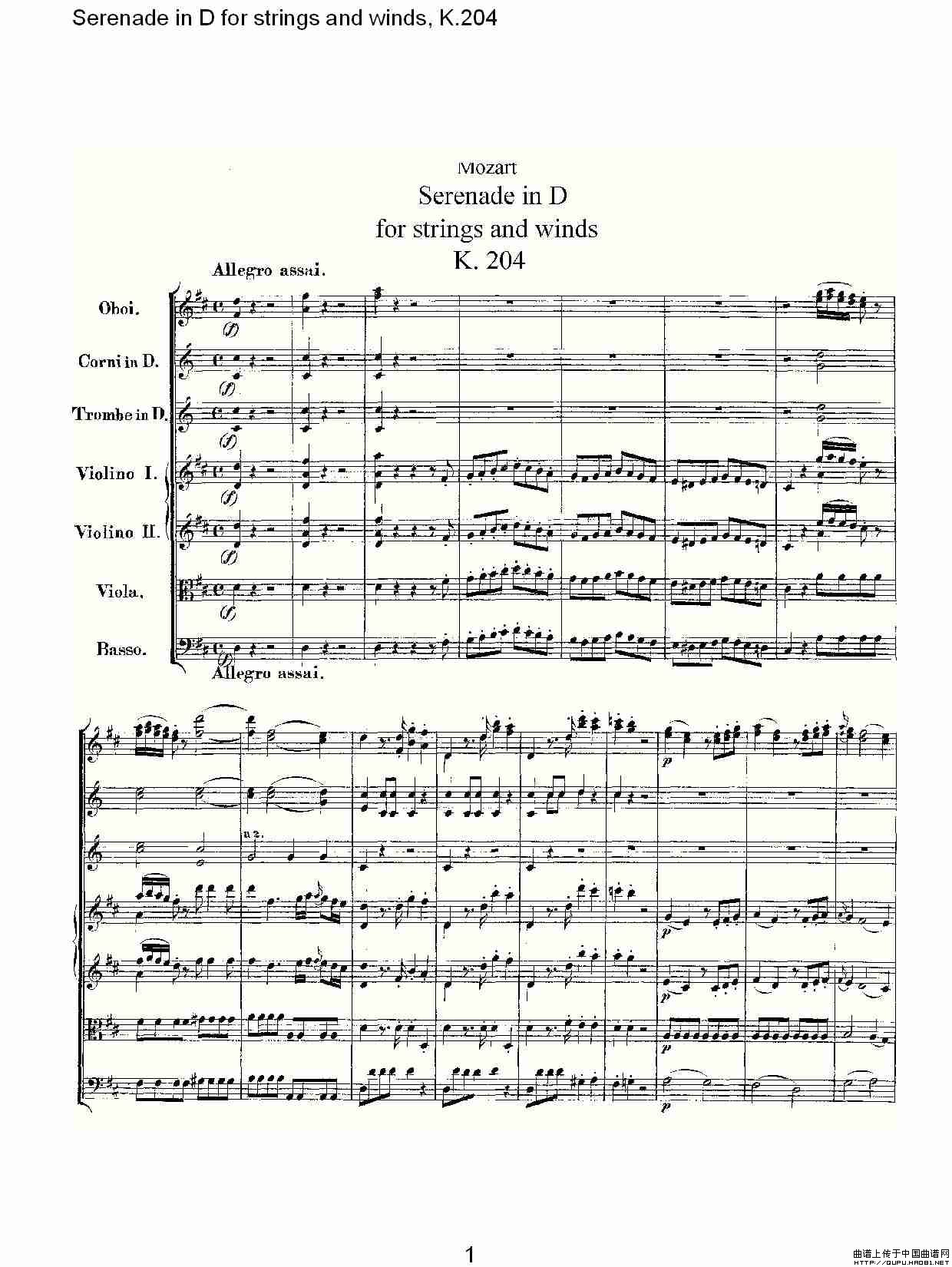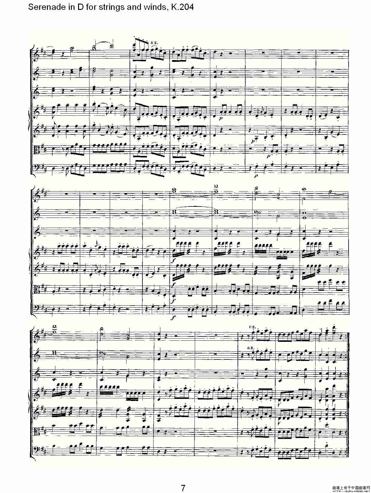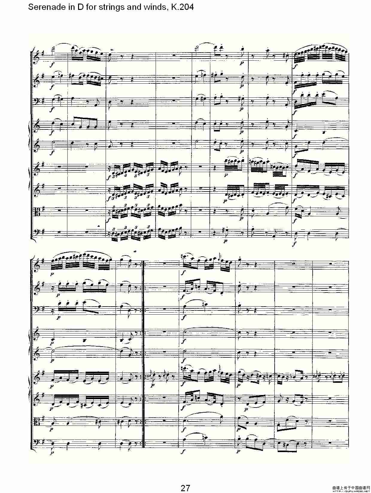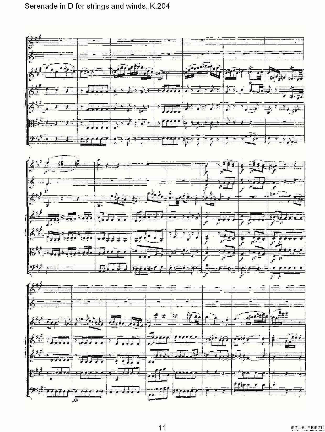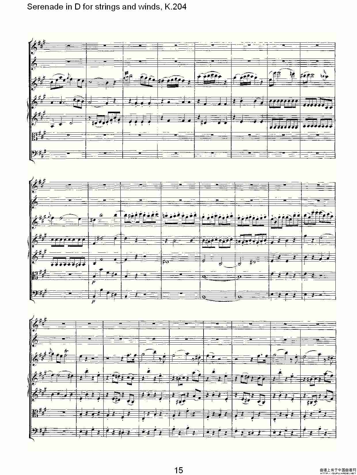 Serenade in D for strings and winds, K.204(D调管弦乐小)相关五线谱