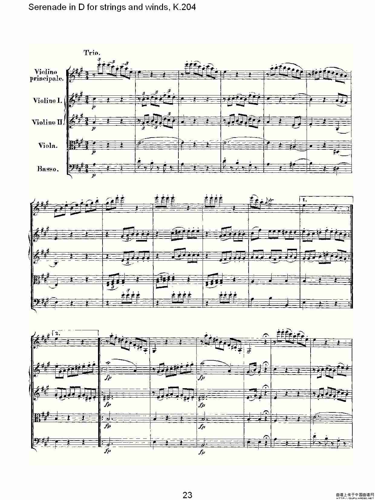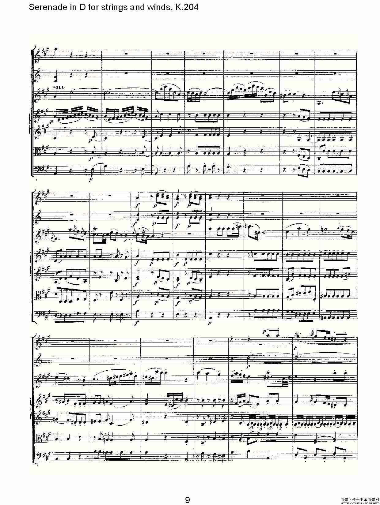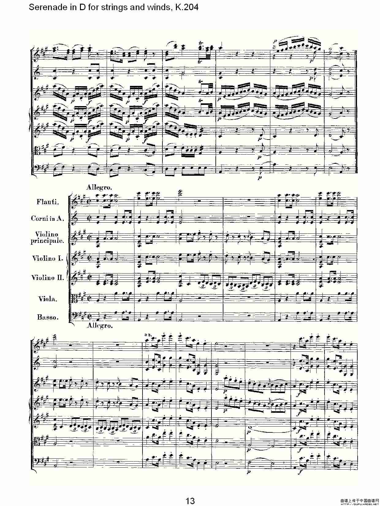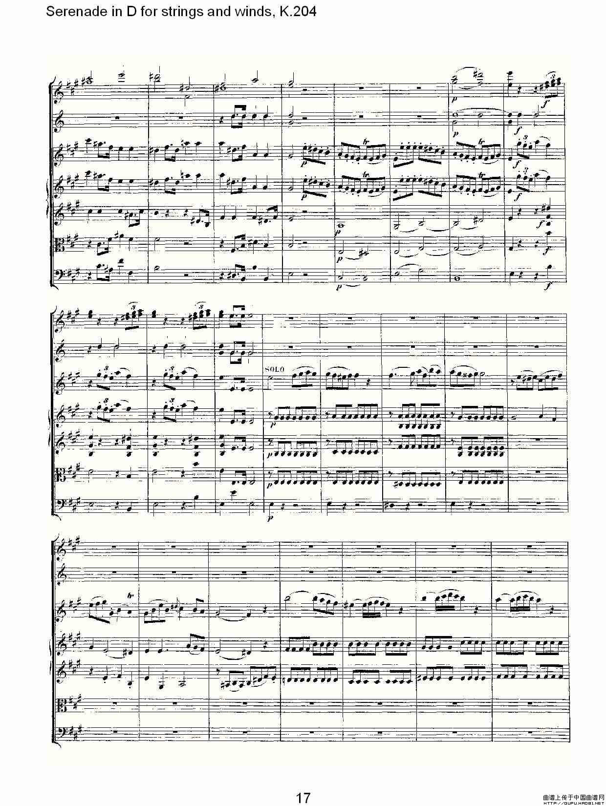 Serenade in D for strings and winds, K.204(D调管弦乐小)相关五线谱