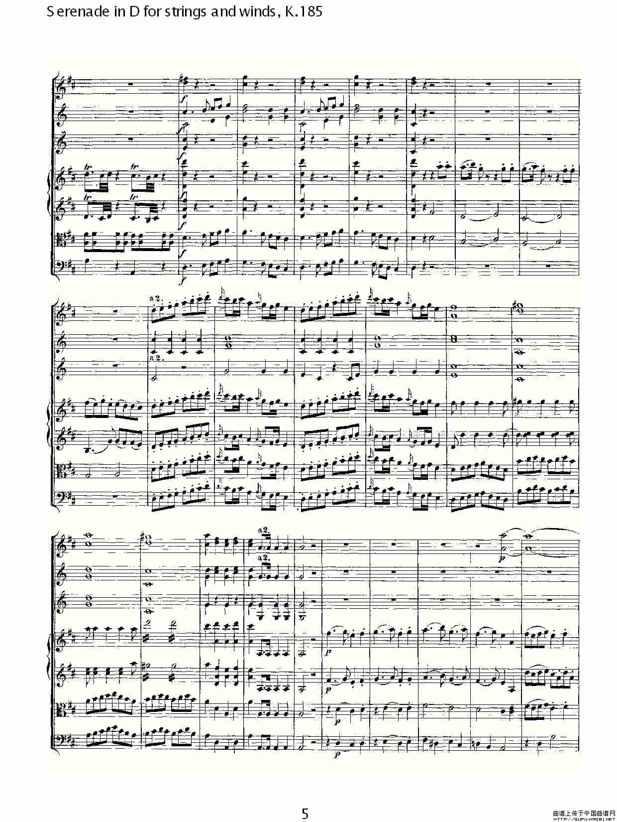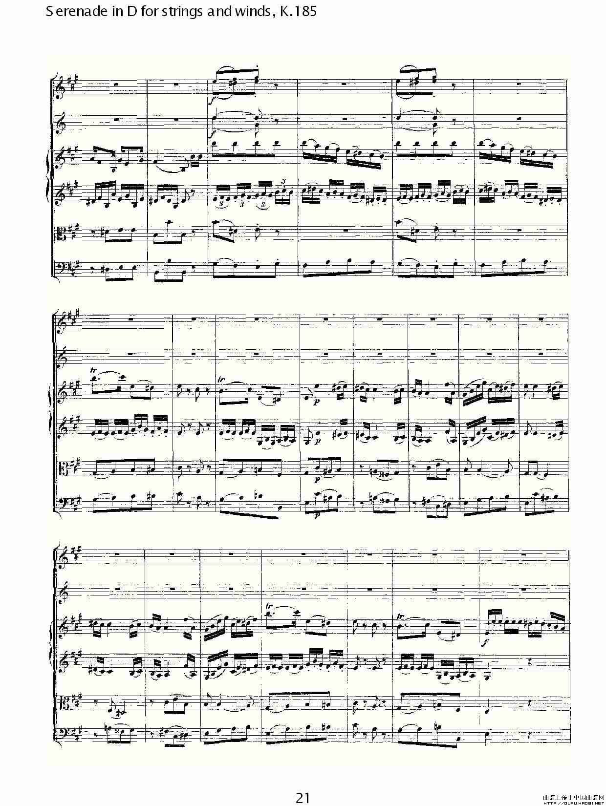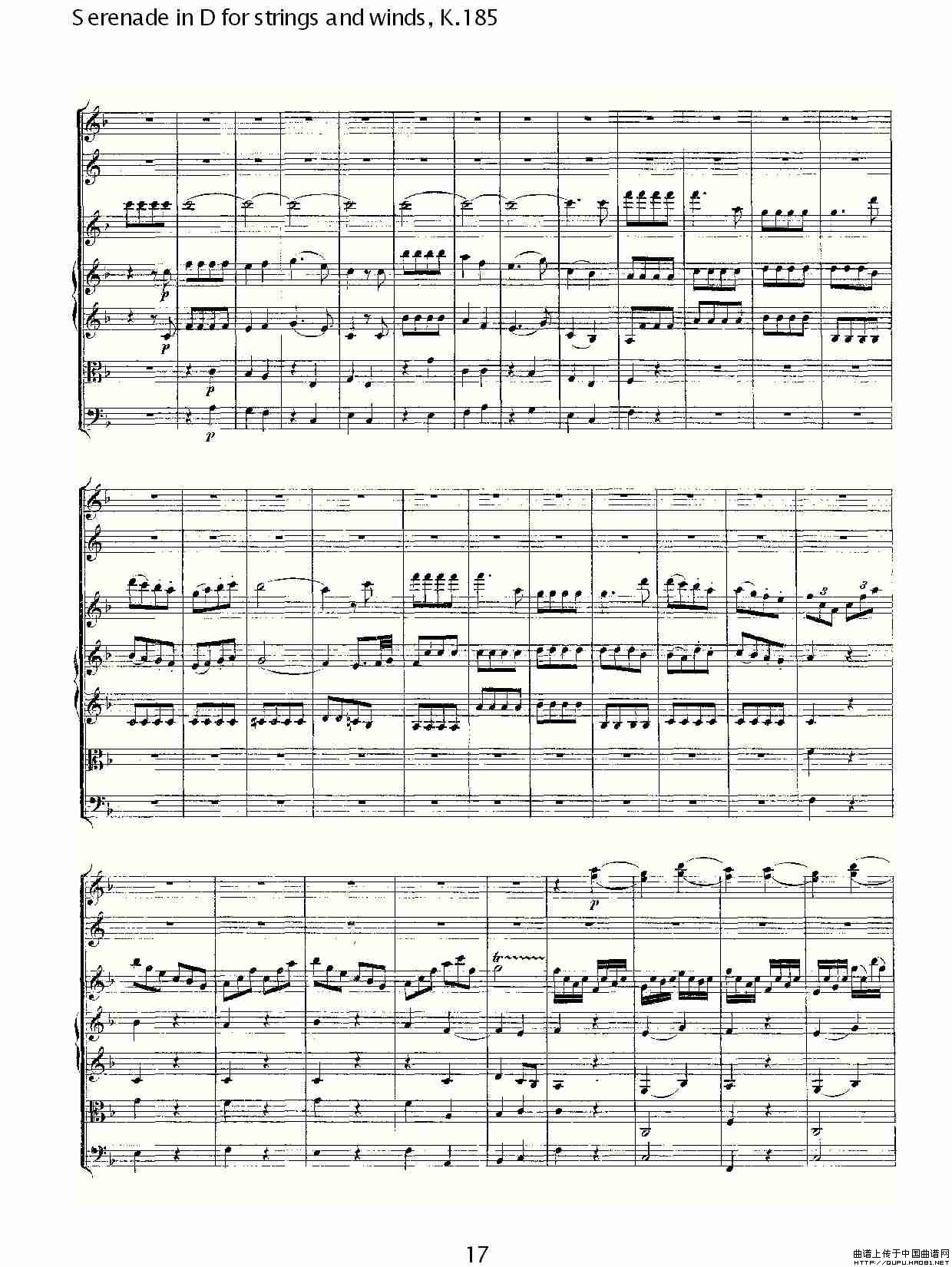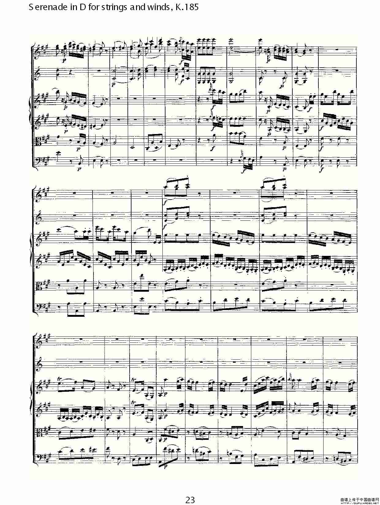 Serenade in D for strings and winds, K.185(D调管弦乐小)相关五线谱