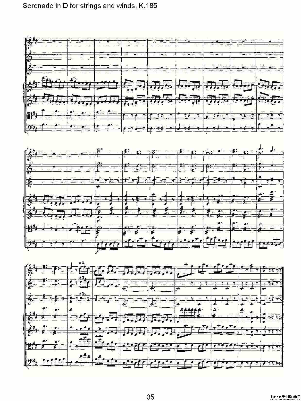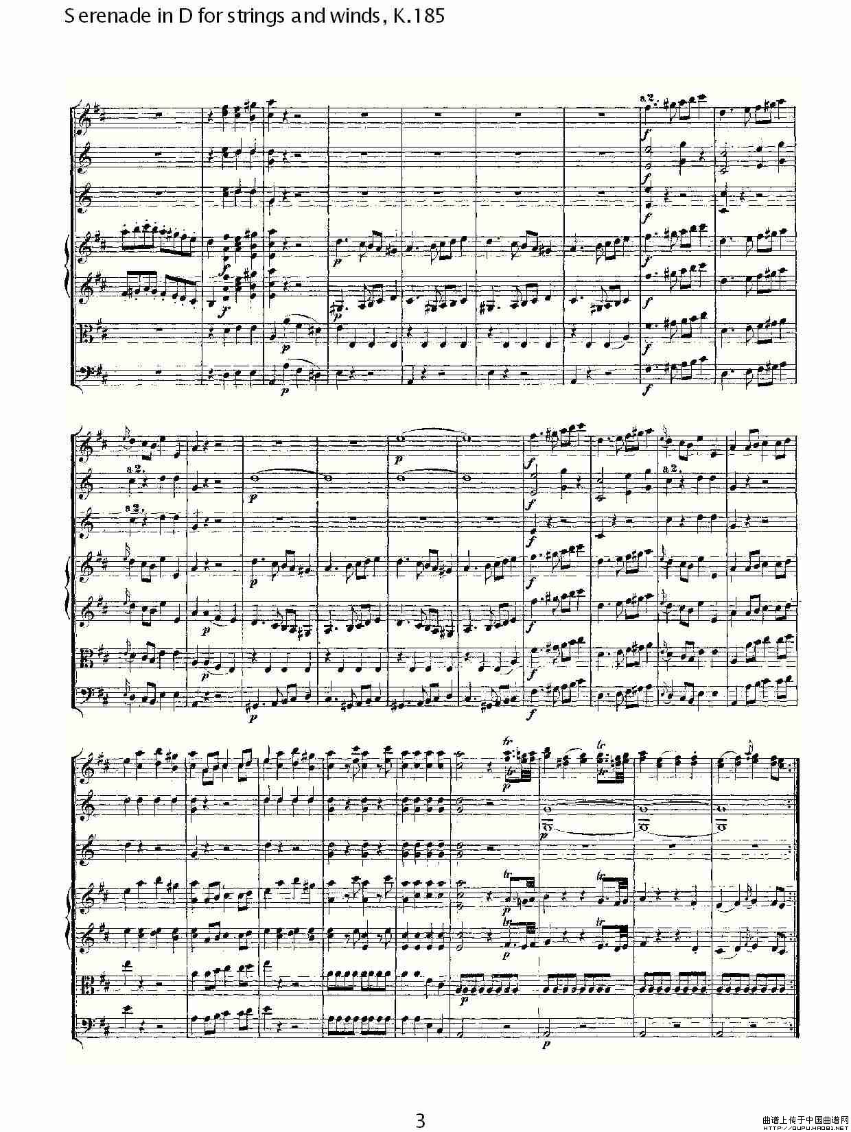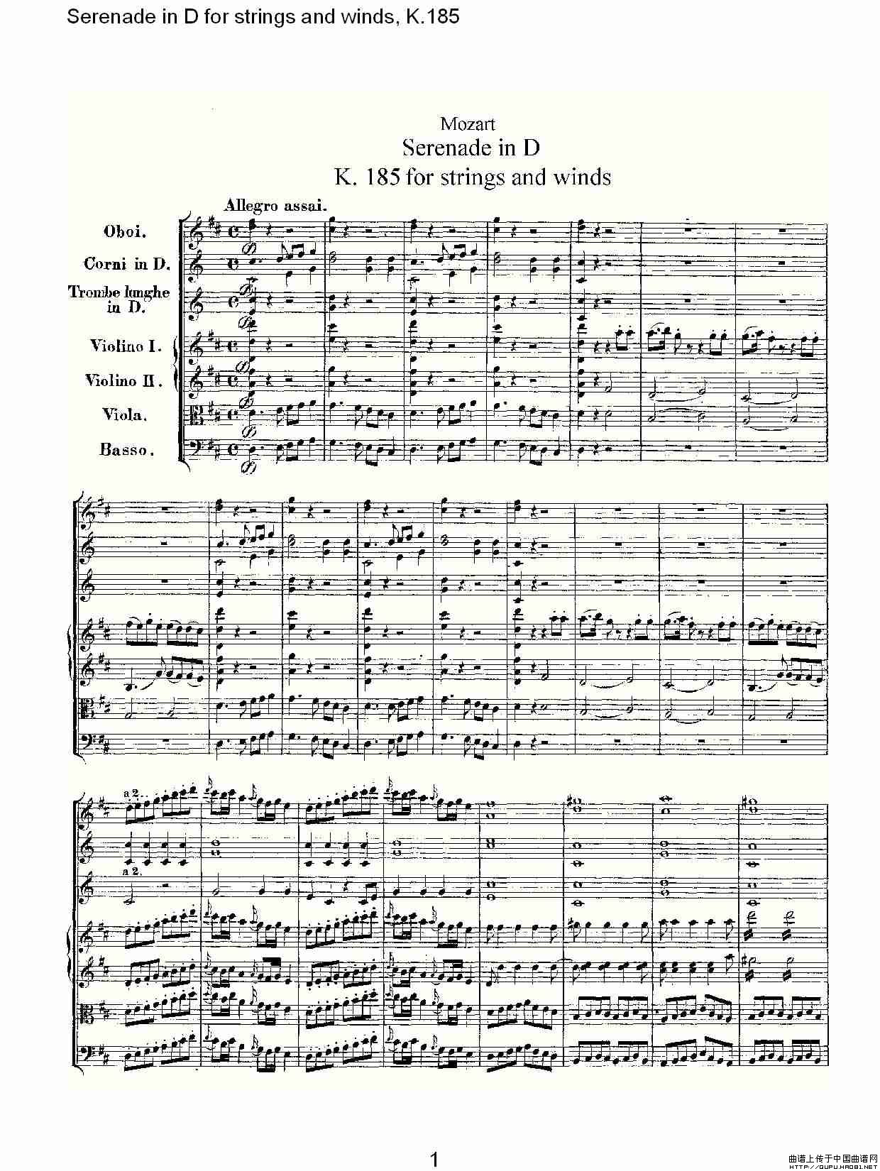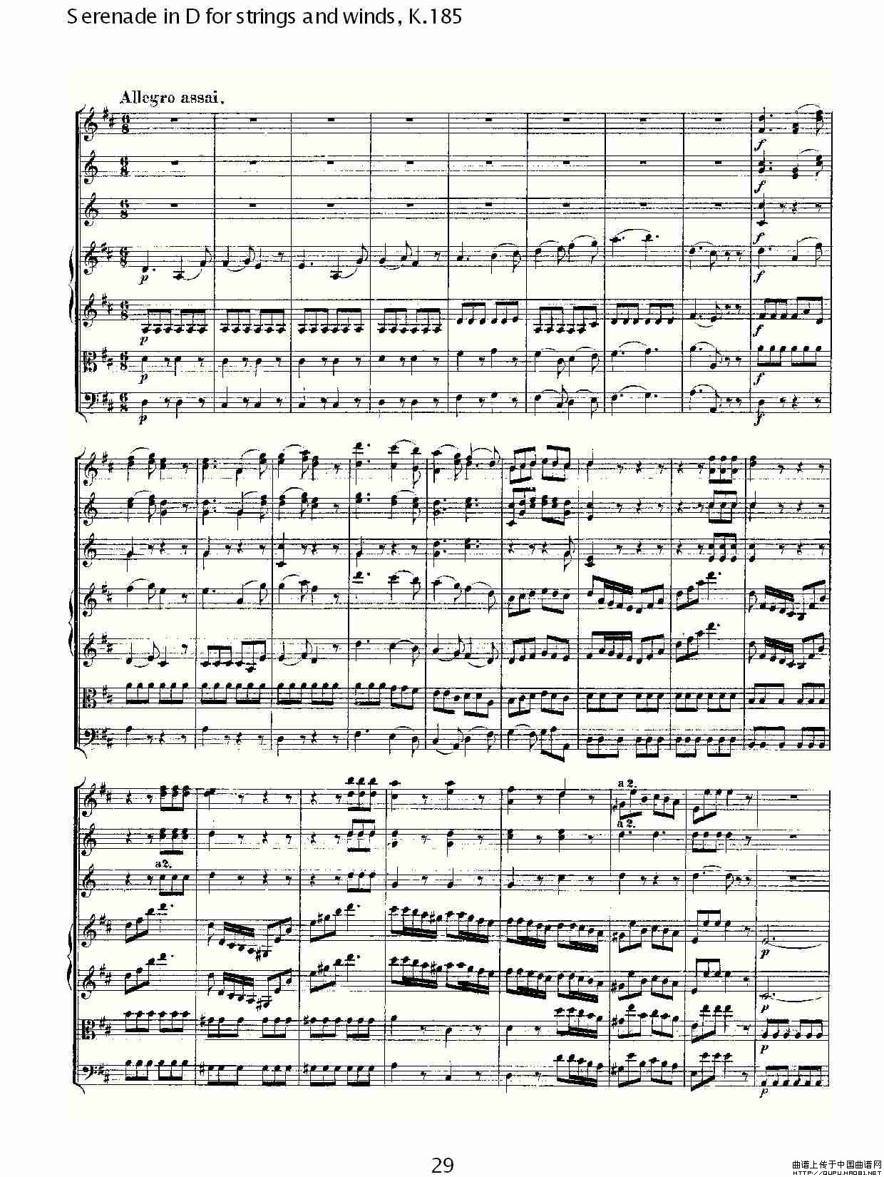Serenade in D for strings and winds, K.185(D调管弦乐小)相关五线谱