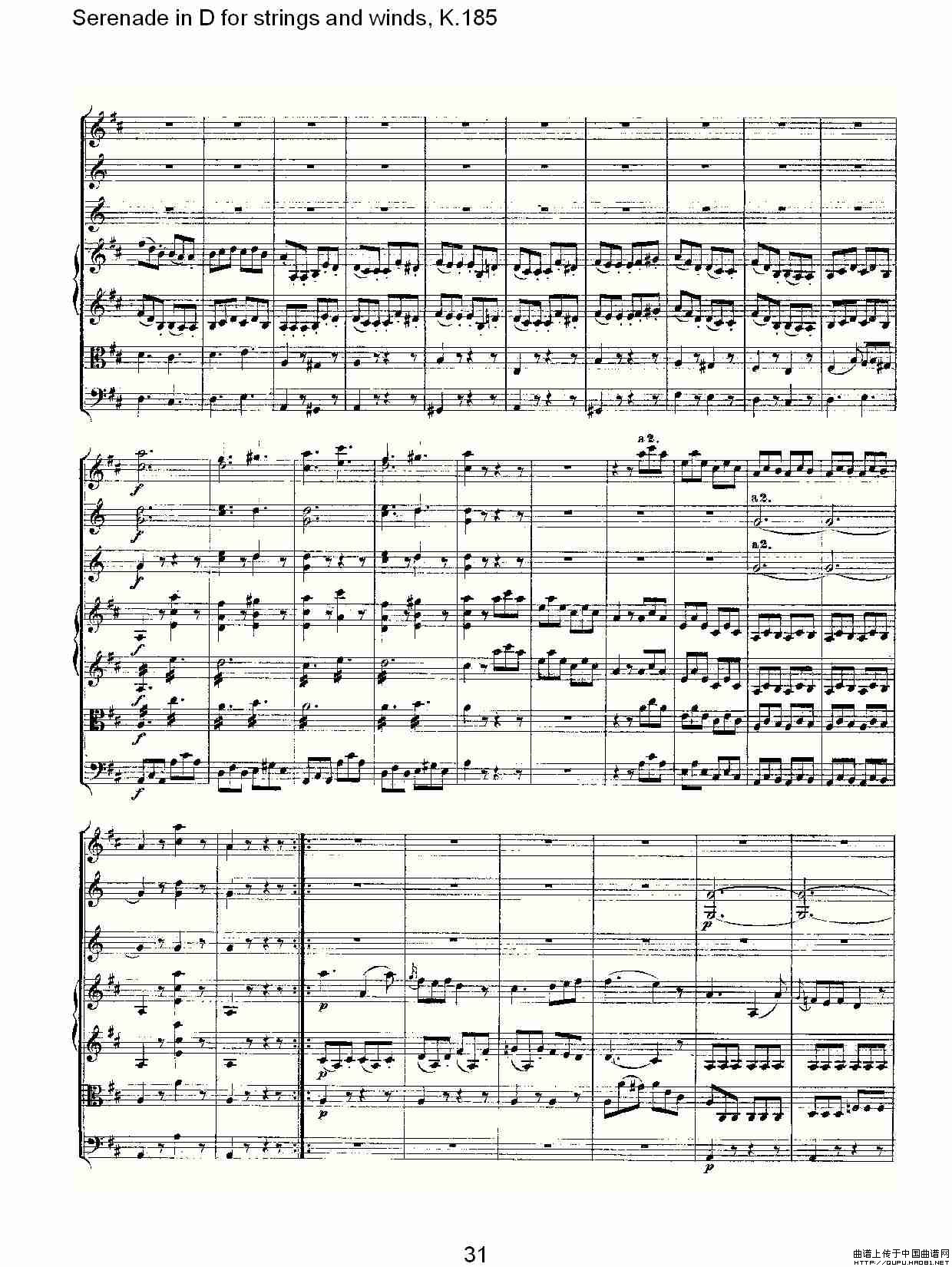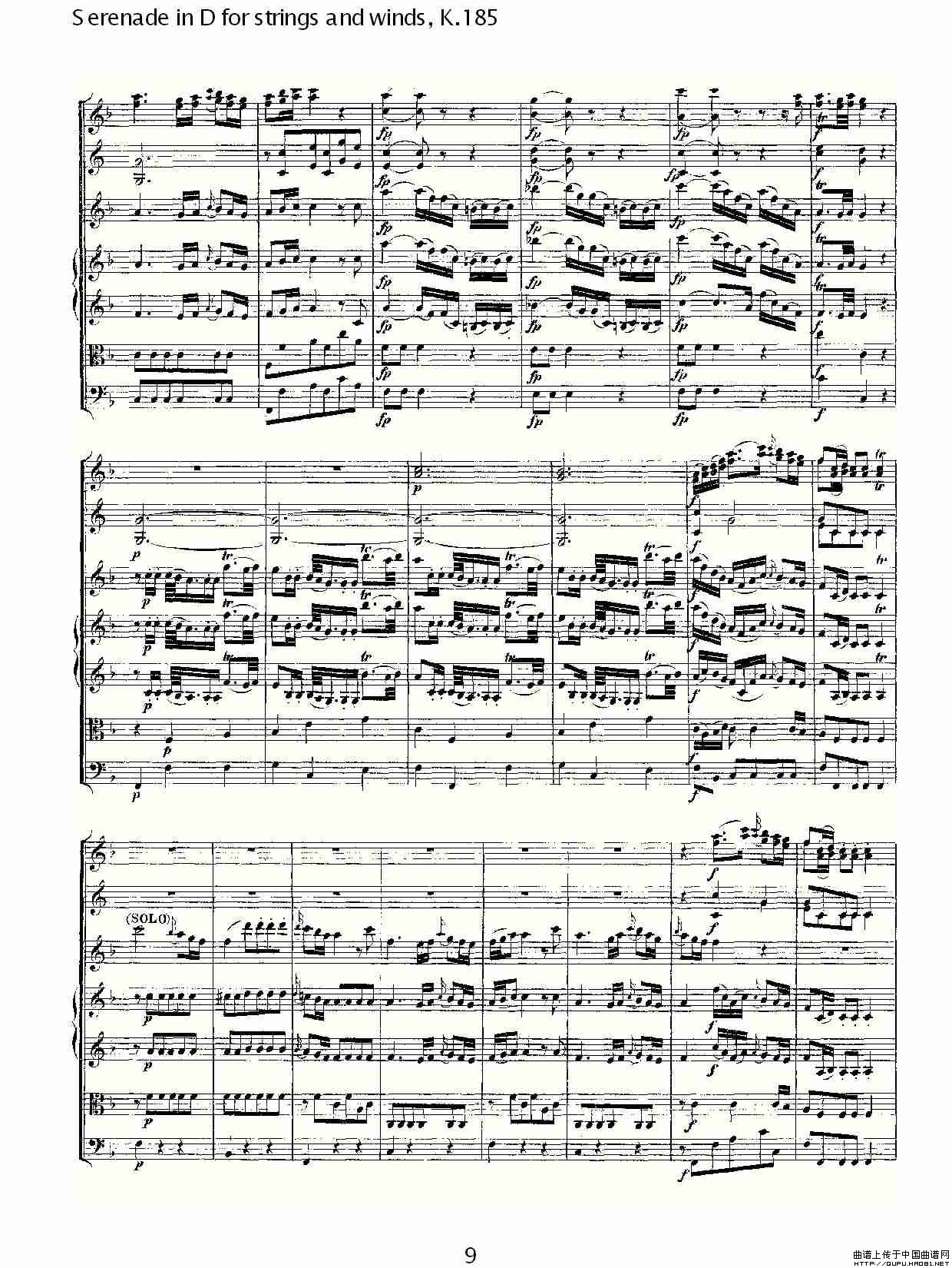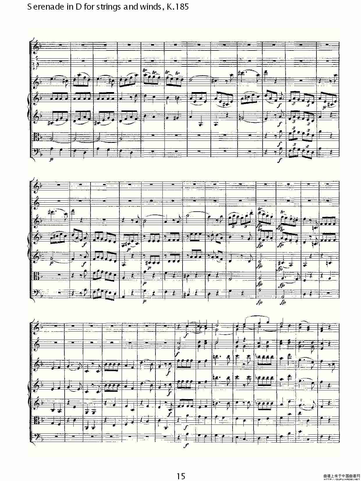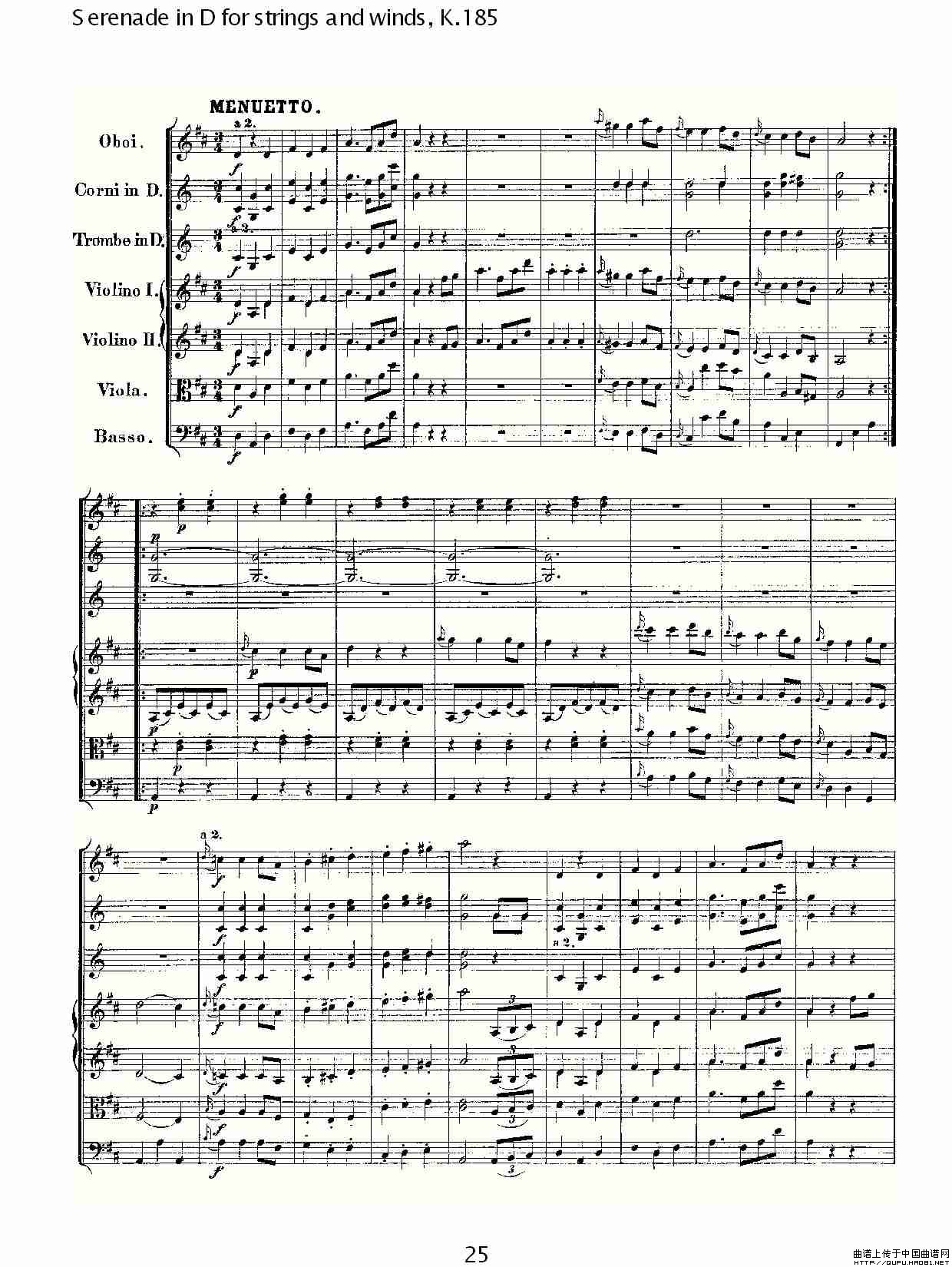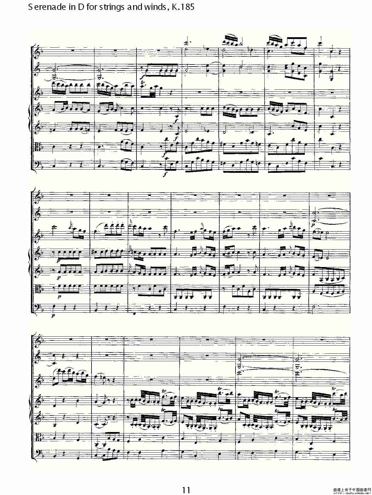 Serenade in D for strings and winds, K.185(D调管弦乐小)相关五线谱