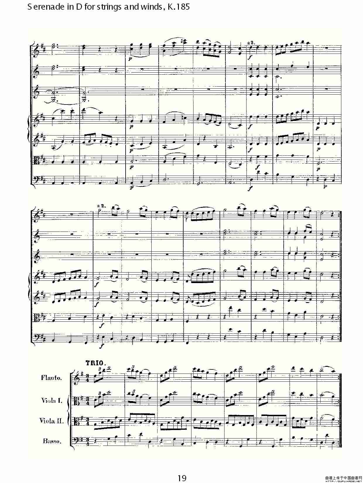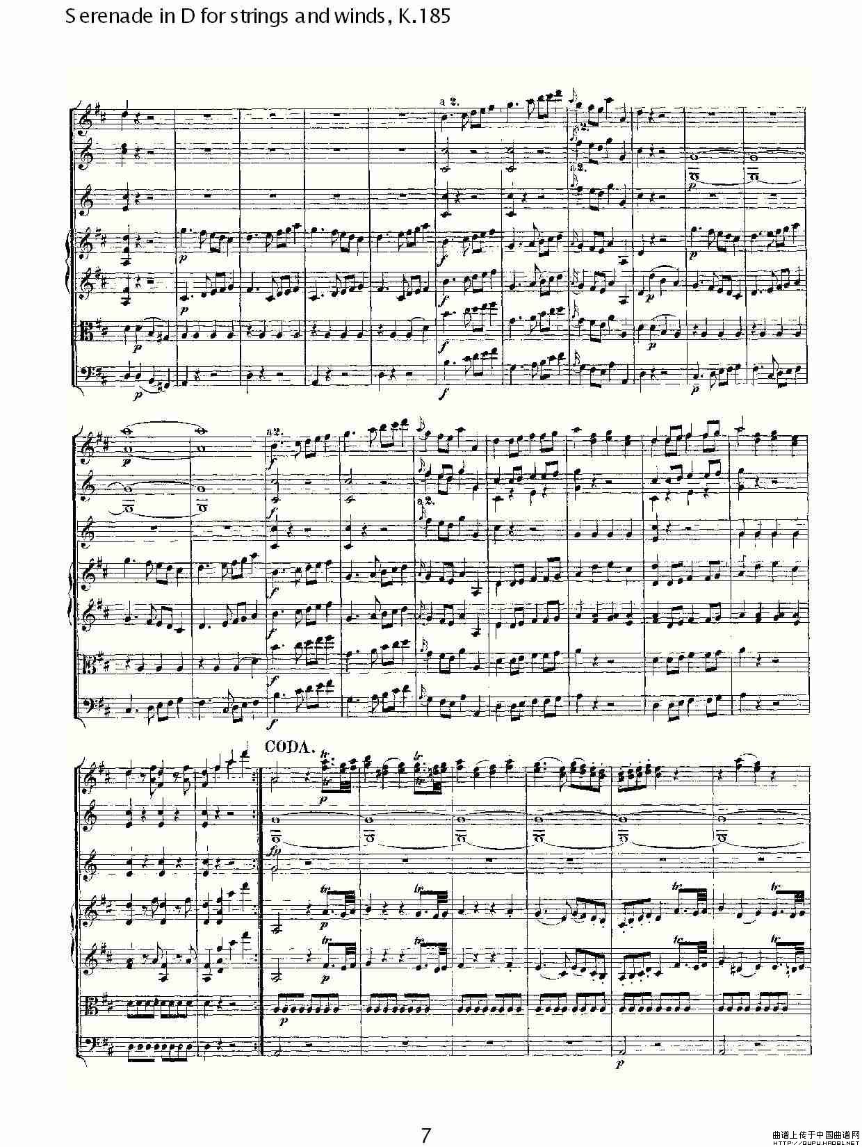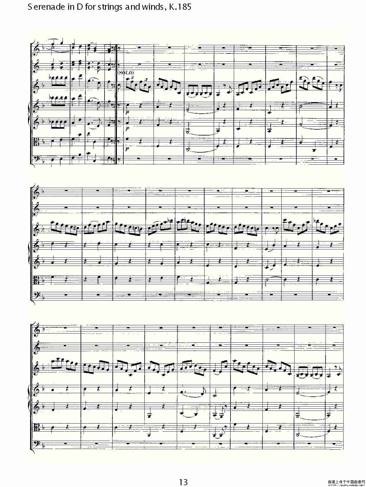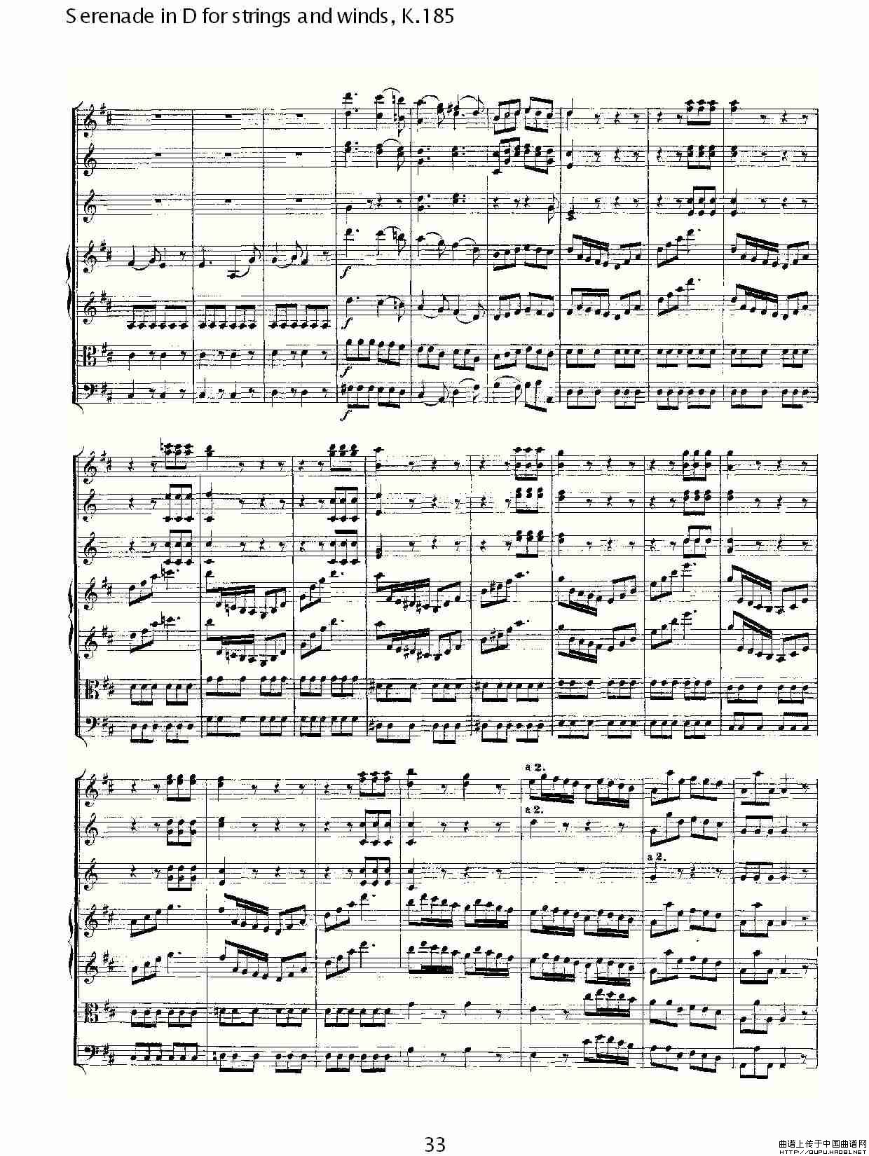 Serenade in D for strings and winds, K.185(D调管弦乐小)相关五线谱