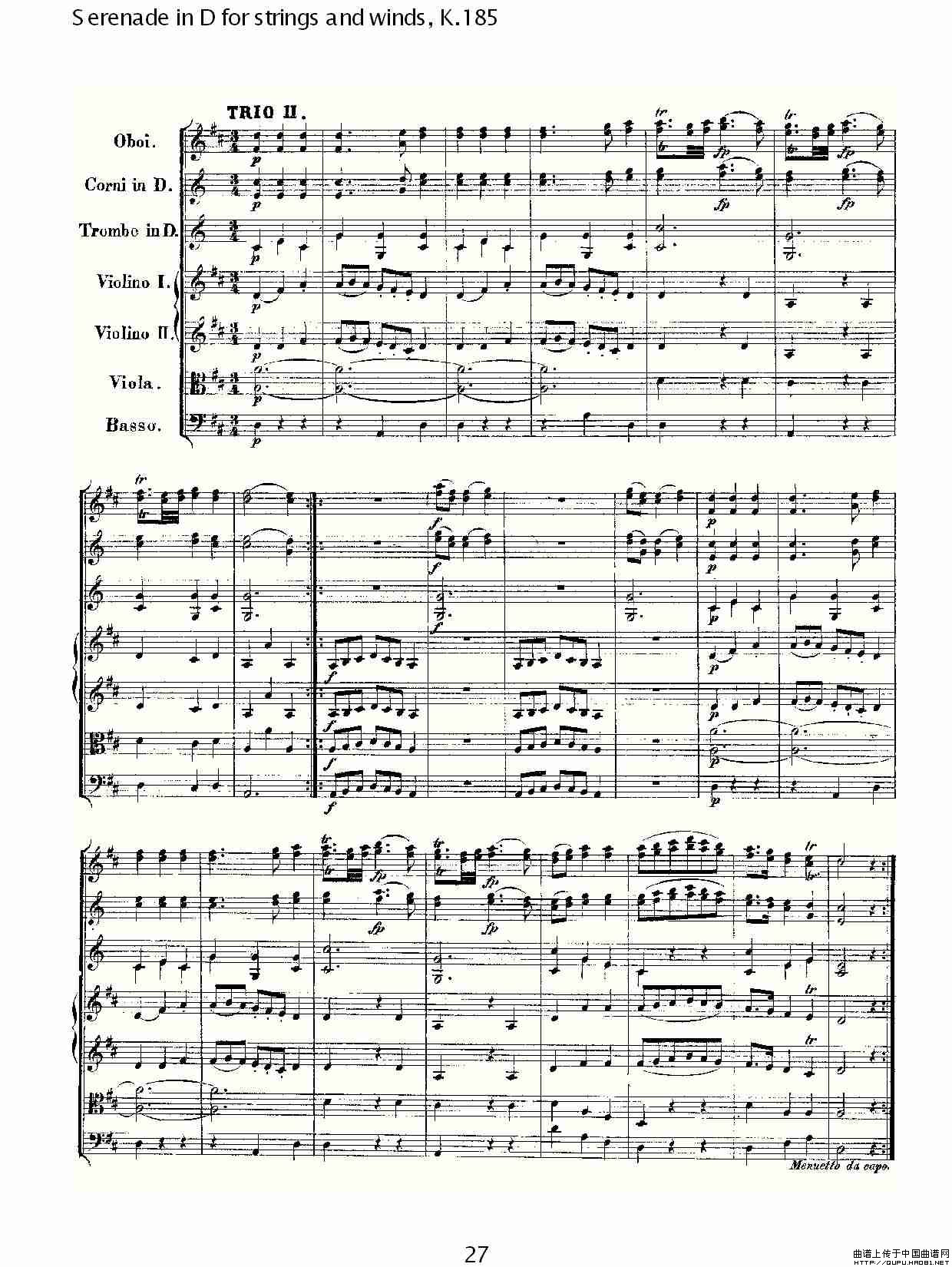 Serenade in D for strings and winds, K.185(D调管弦乐小)