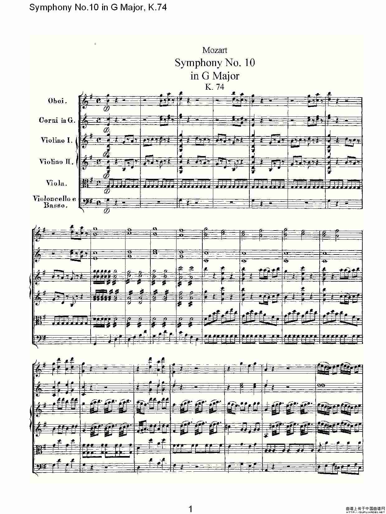 Symphony No.10 in G Major, K.74(G大调第十交响曲K.74)相关五线谱