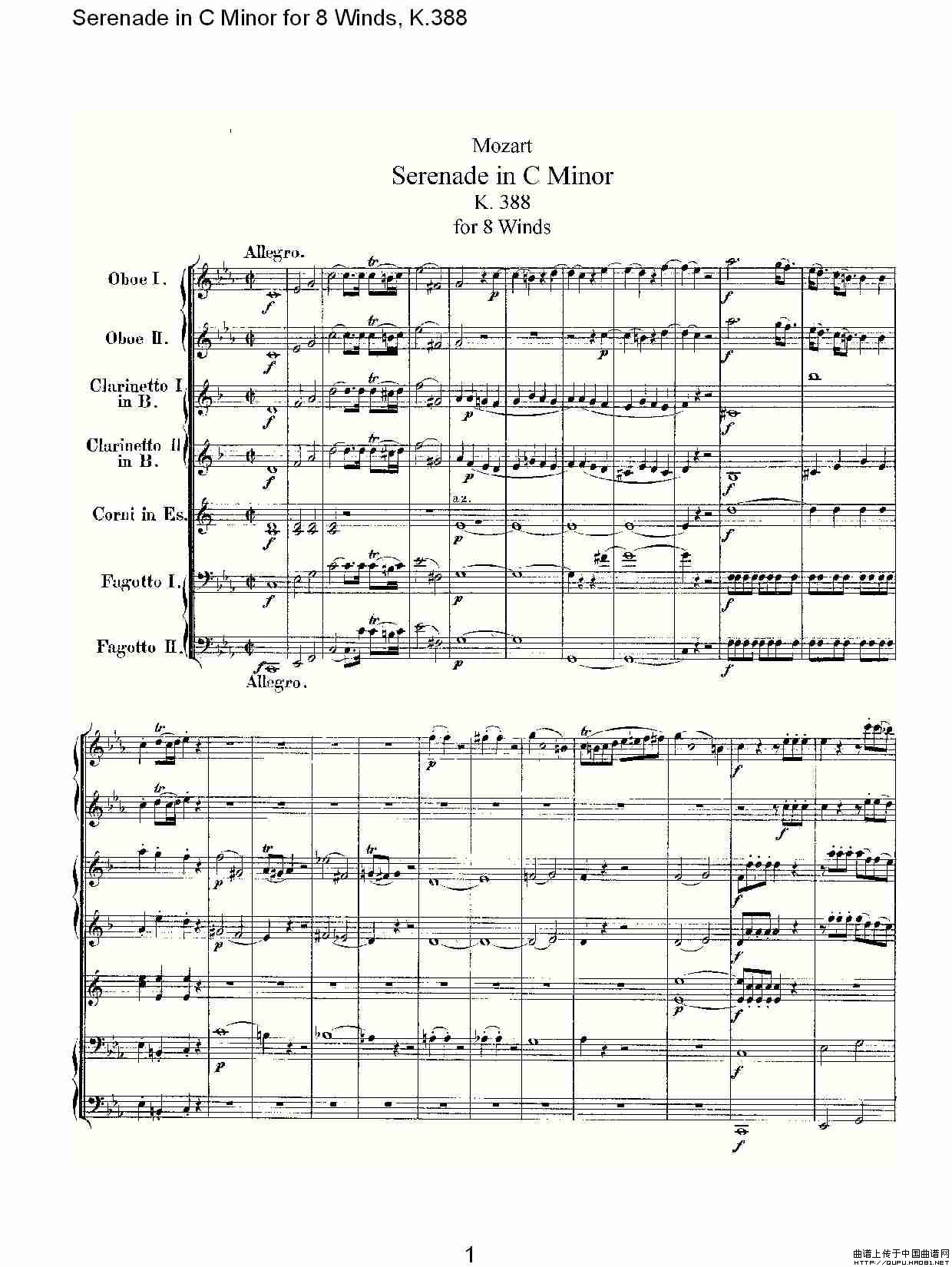 Serenade in C Minor for 8 Winds, K.388(C大调8管乐小夜曲)相关五线谱