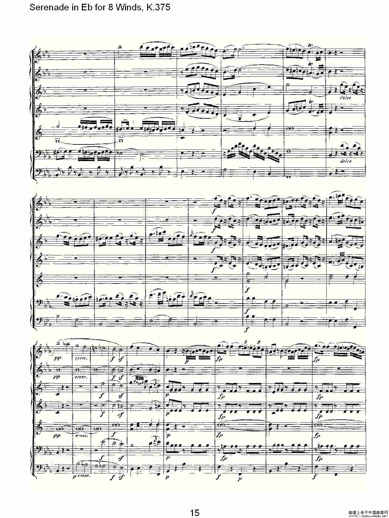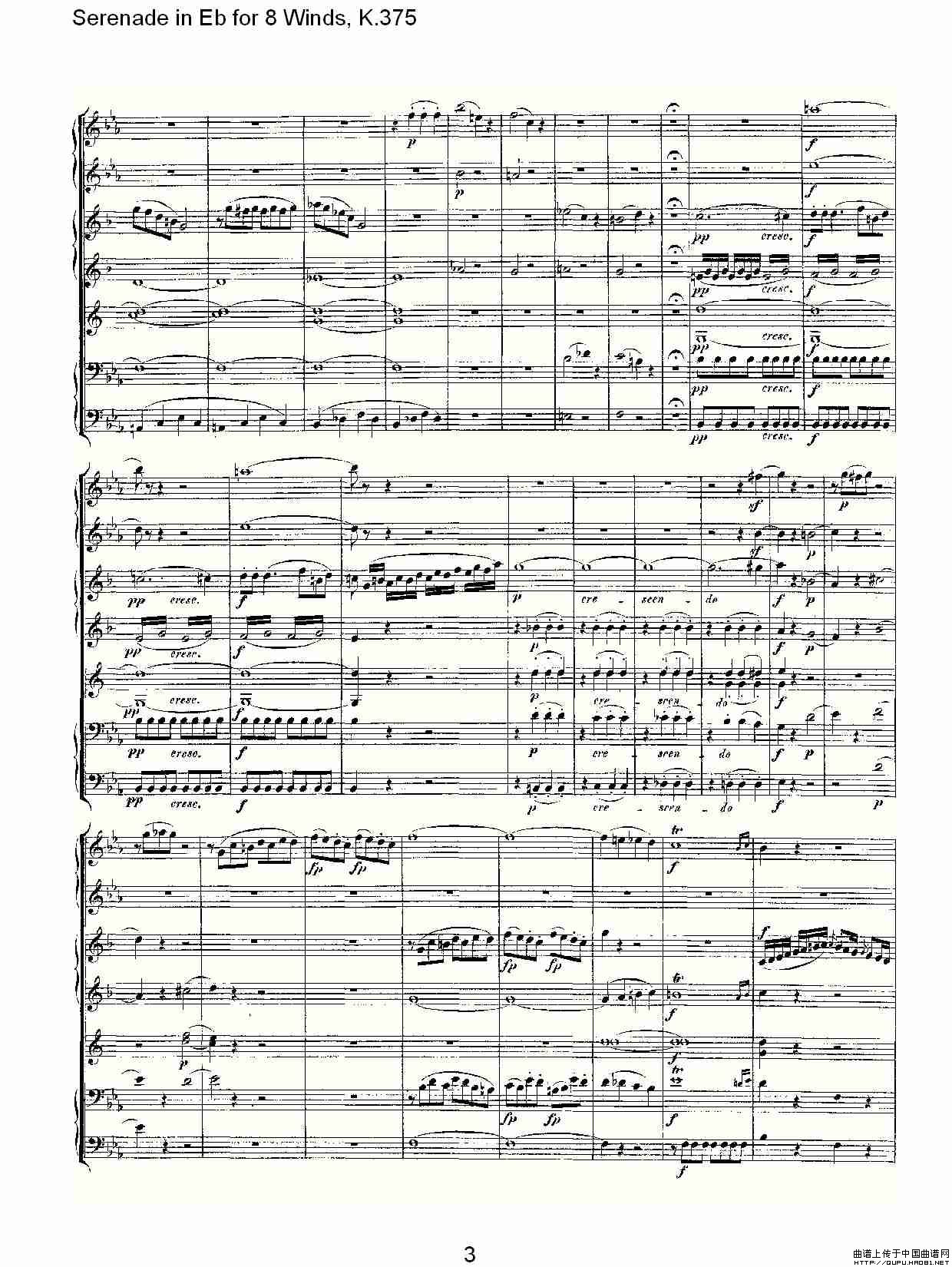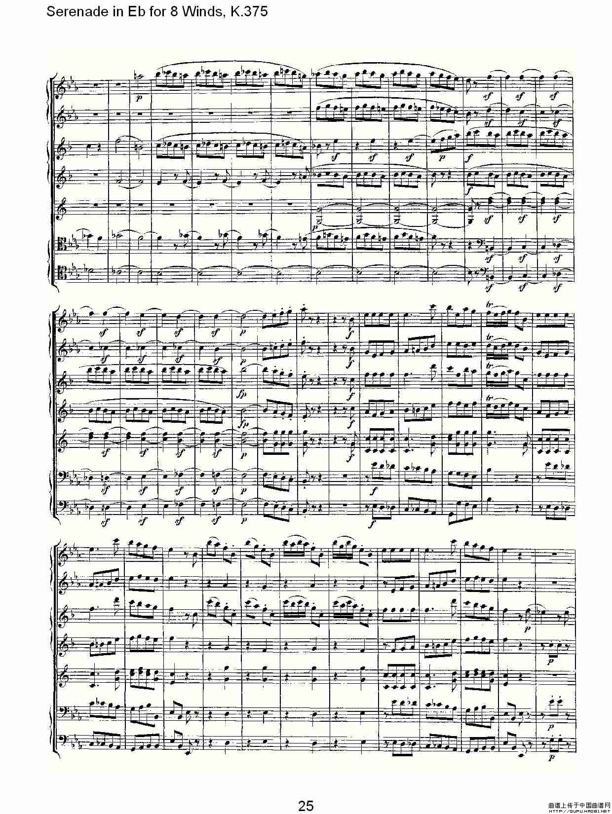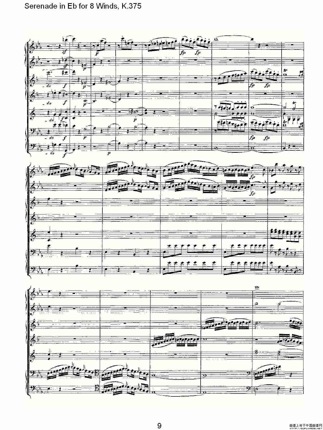 Serenade in Eb for 8 Winds, K.375(Eb调8管乐小夜曲, K.37)相关五线谱