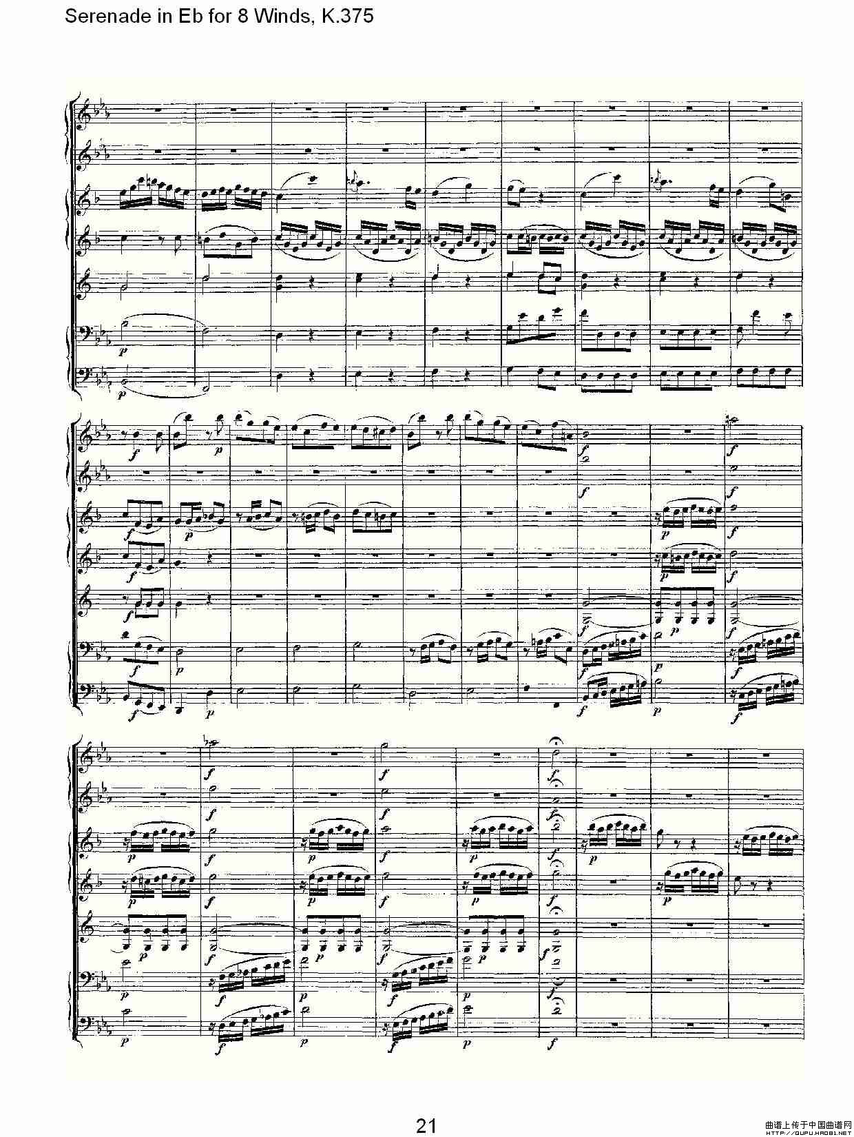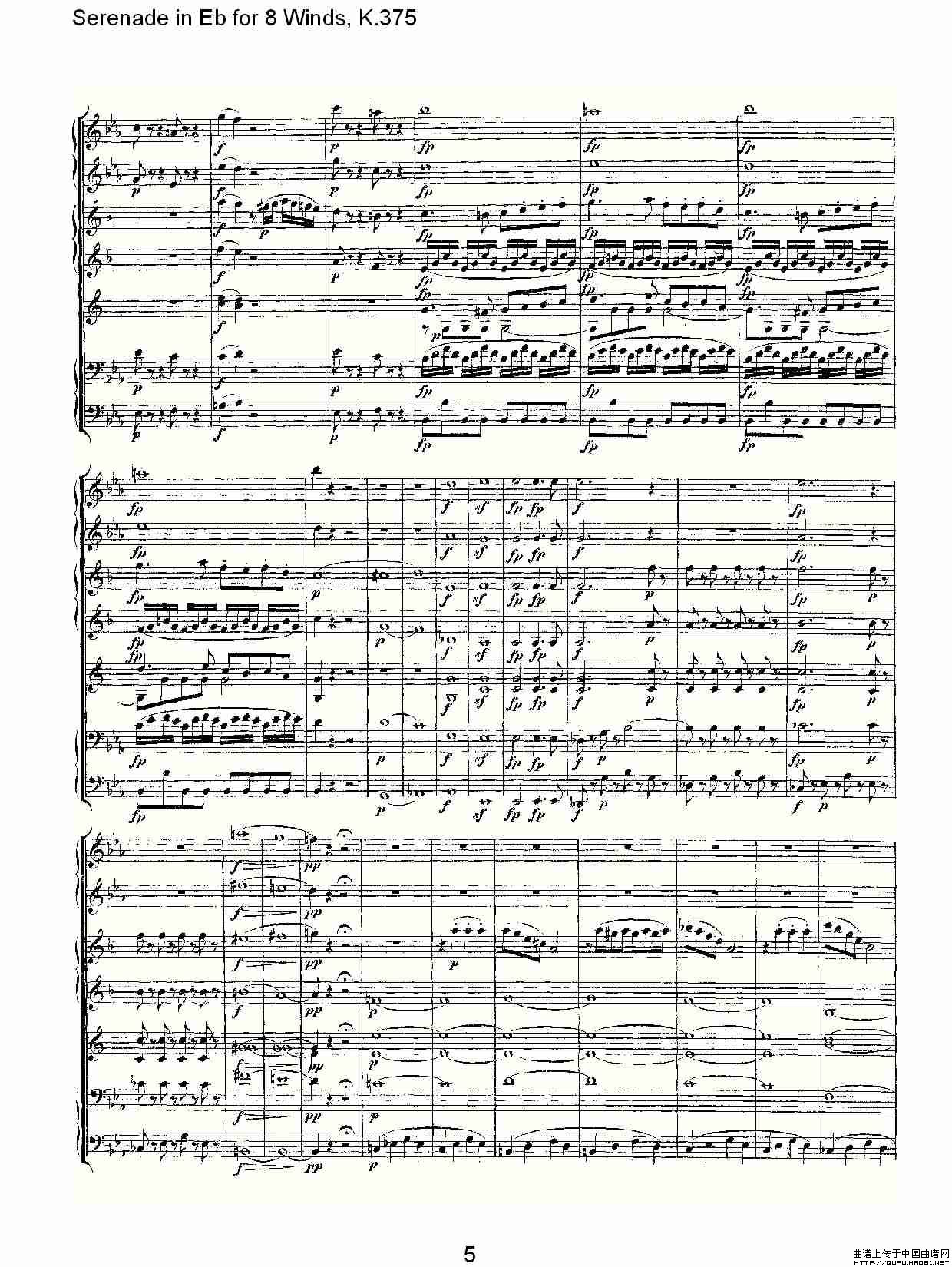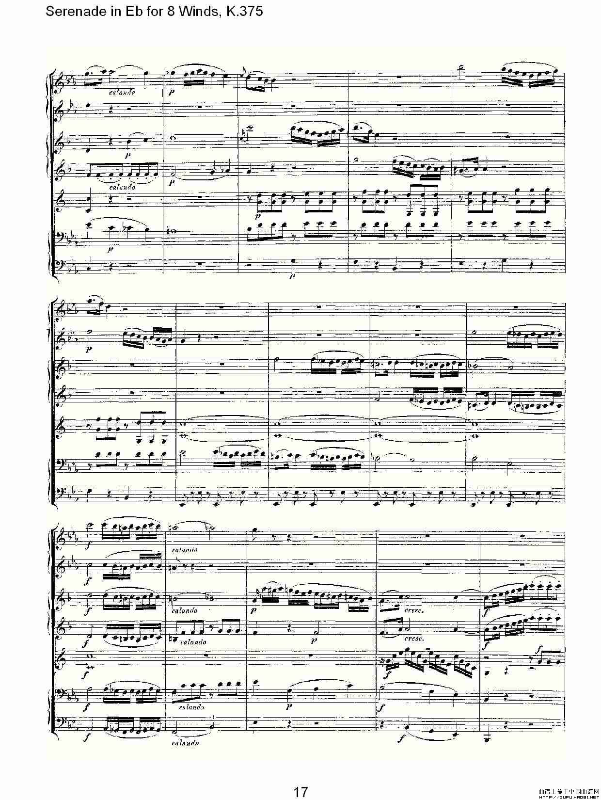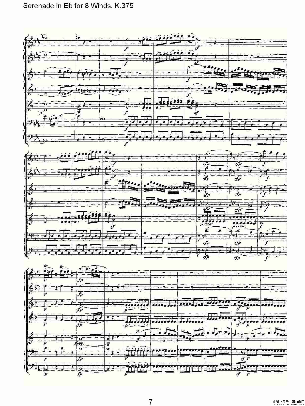 Serenade in Eb for 8 Winds, K.375(Eb调8管乐小夜曲, K.37)相关五线谱