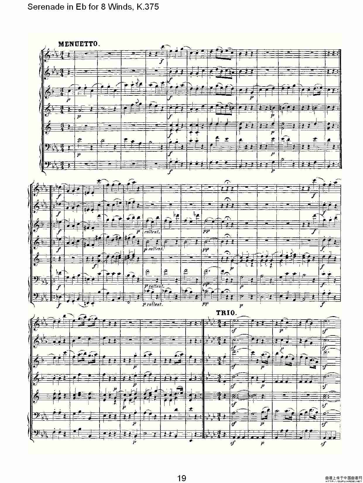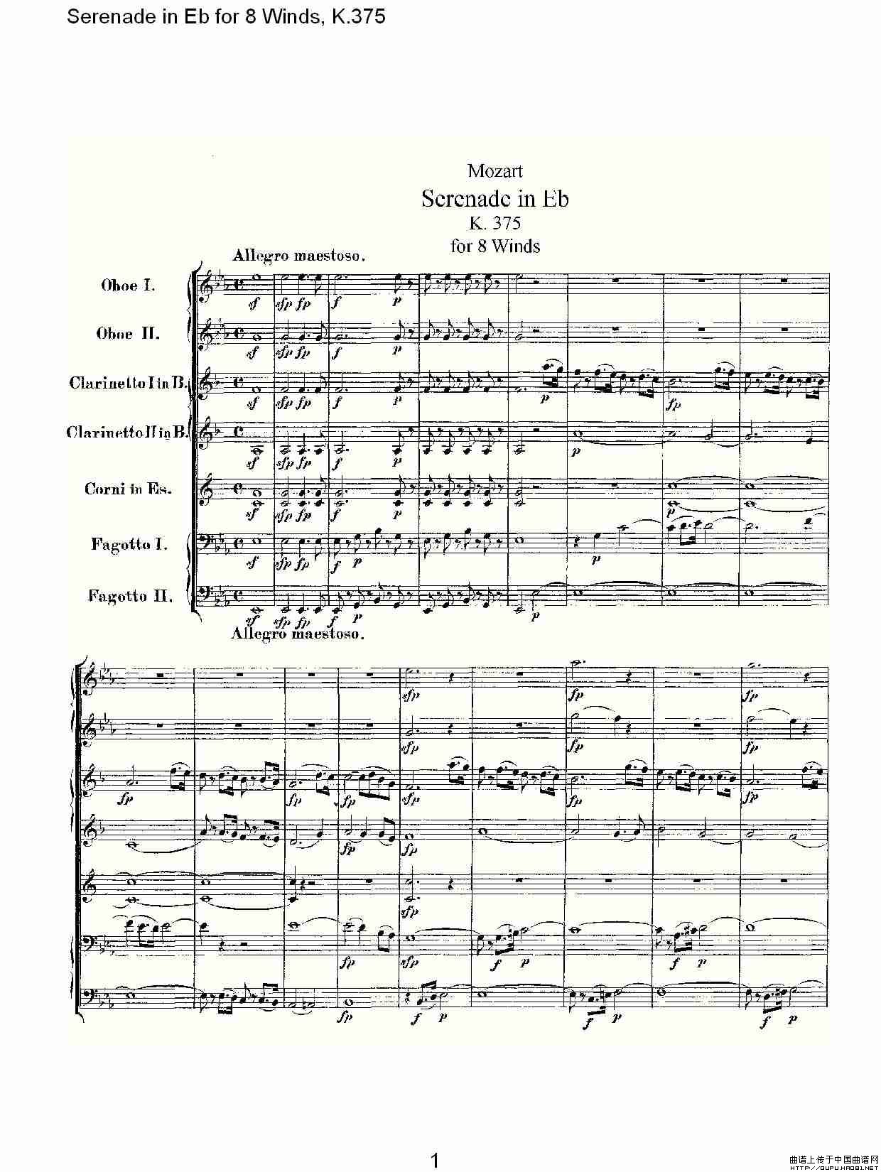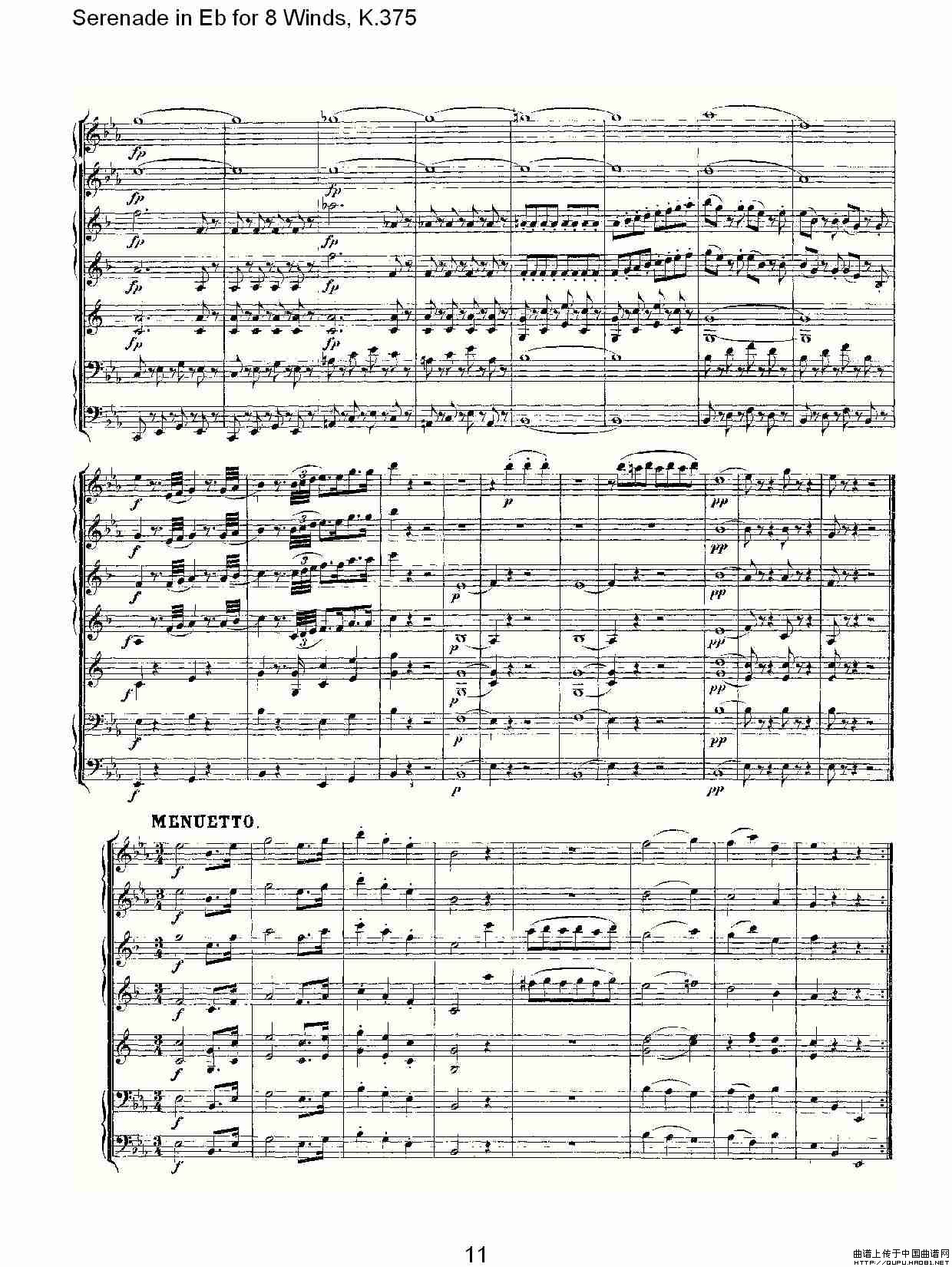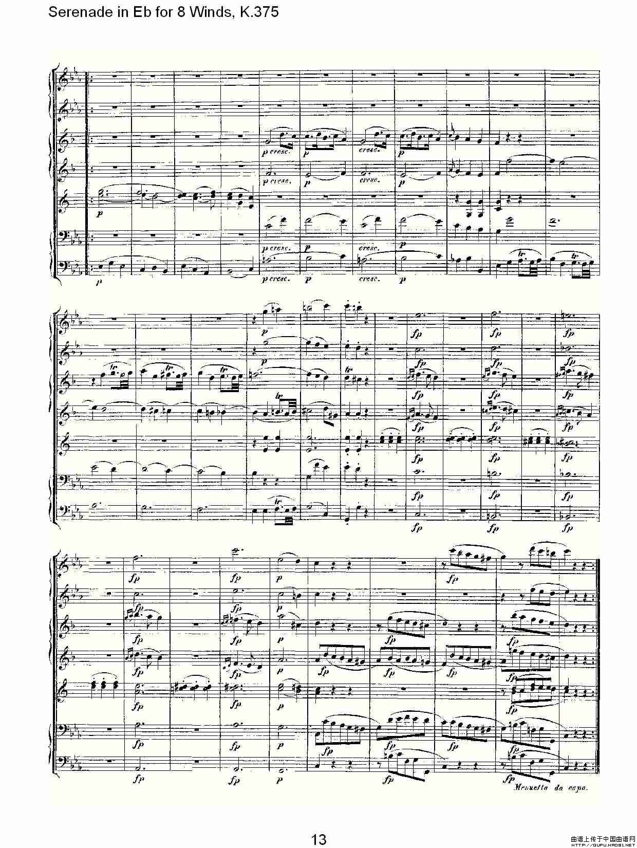 Serenade in Eb for 8 Winds, K.375(Eb调8管乐小夜曲, K.37)相关五线谱