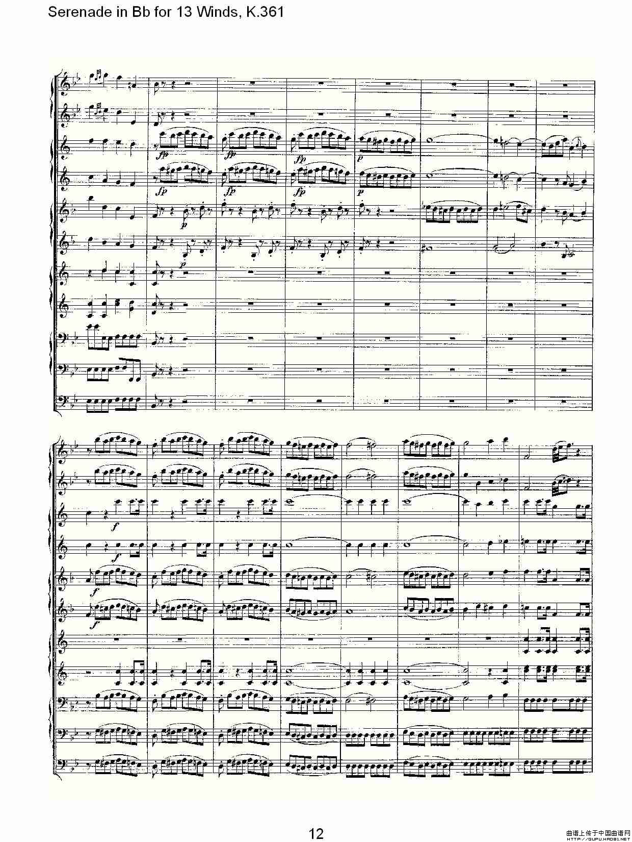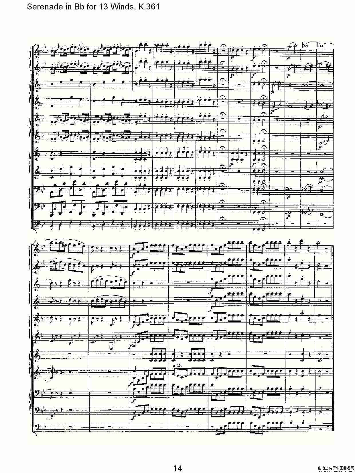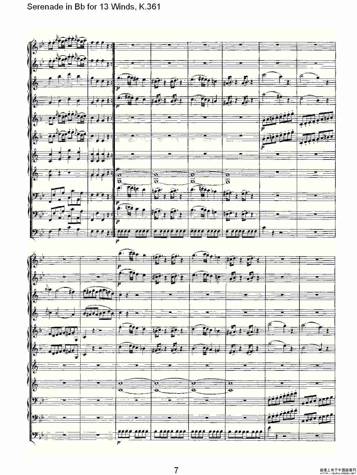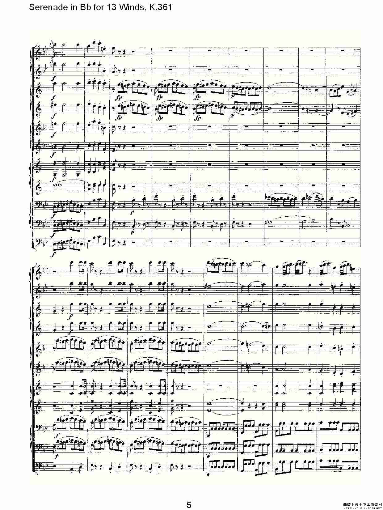 Serenade in Bb for 13 Winds, K.361(Bb调13管乐小夜曲, K.)相关五线谱