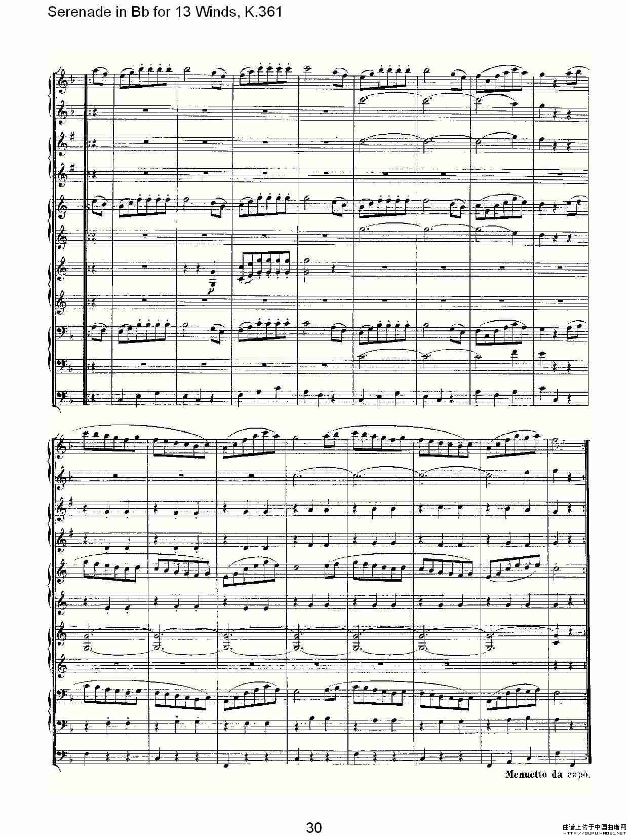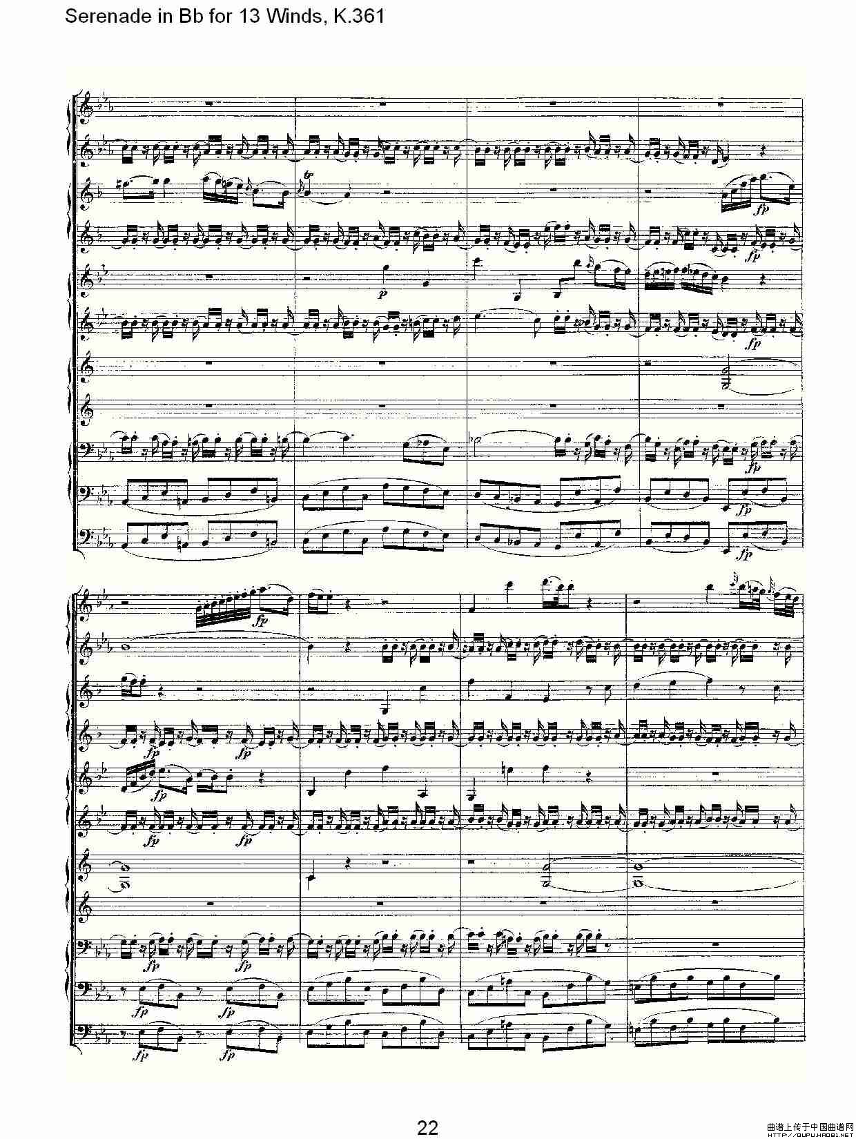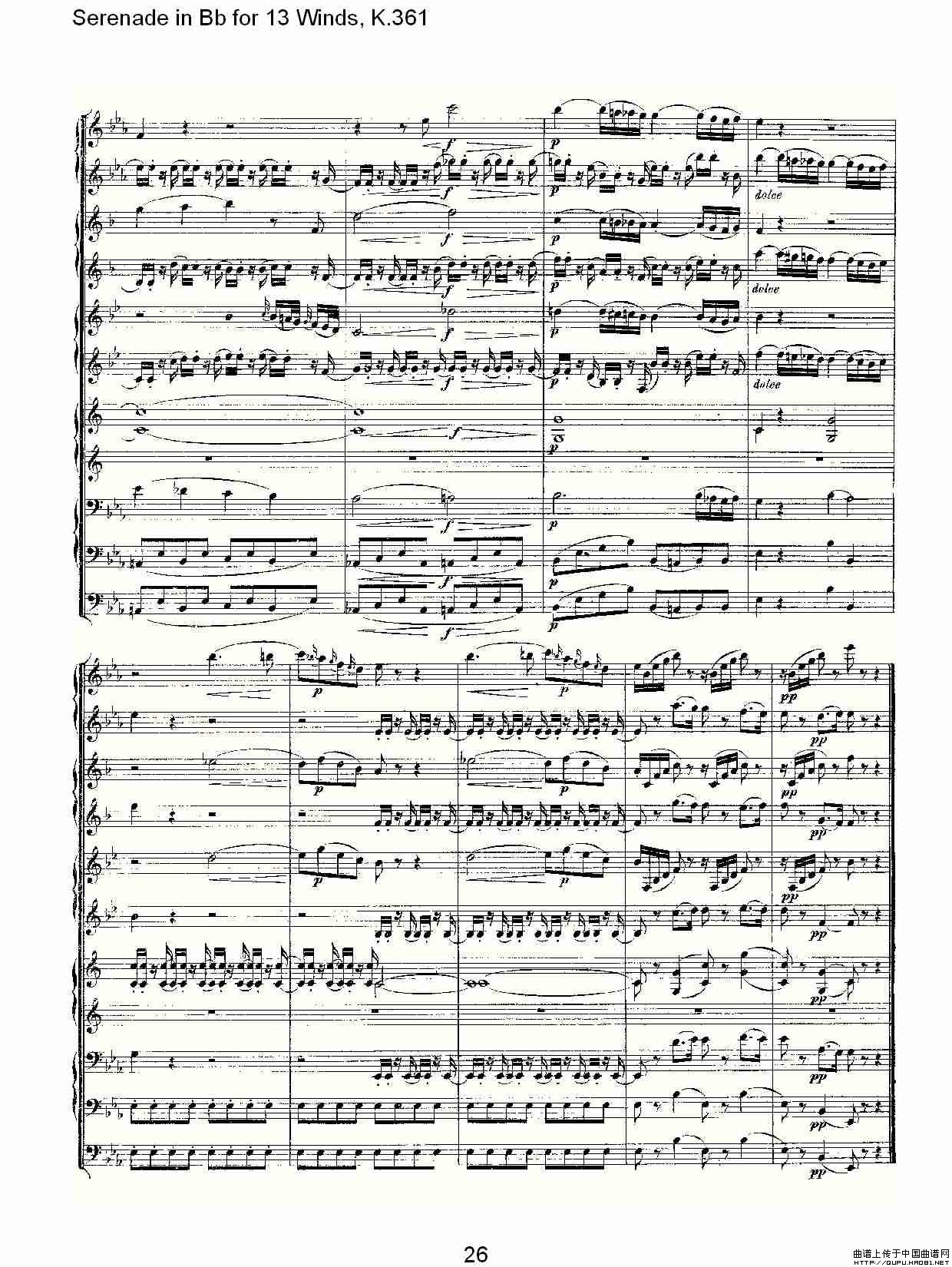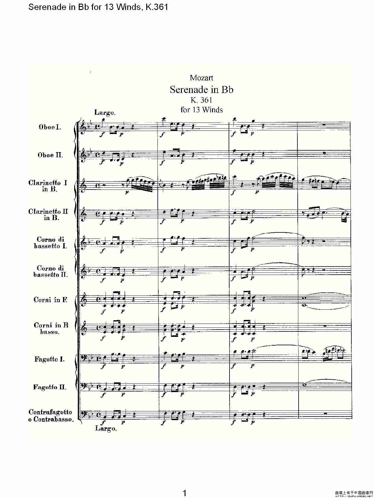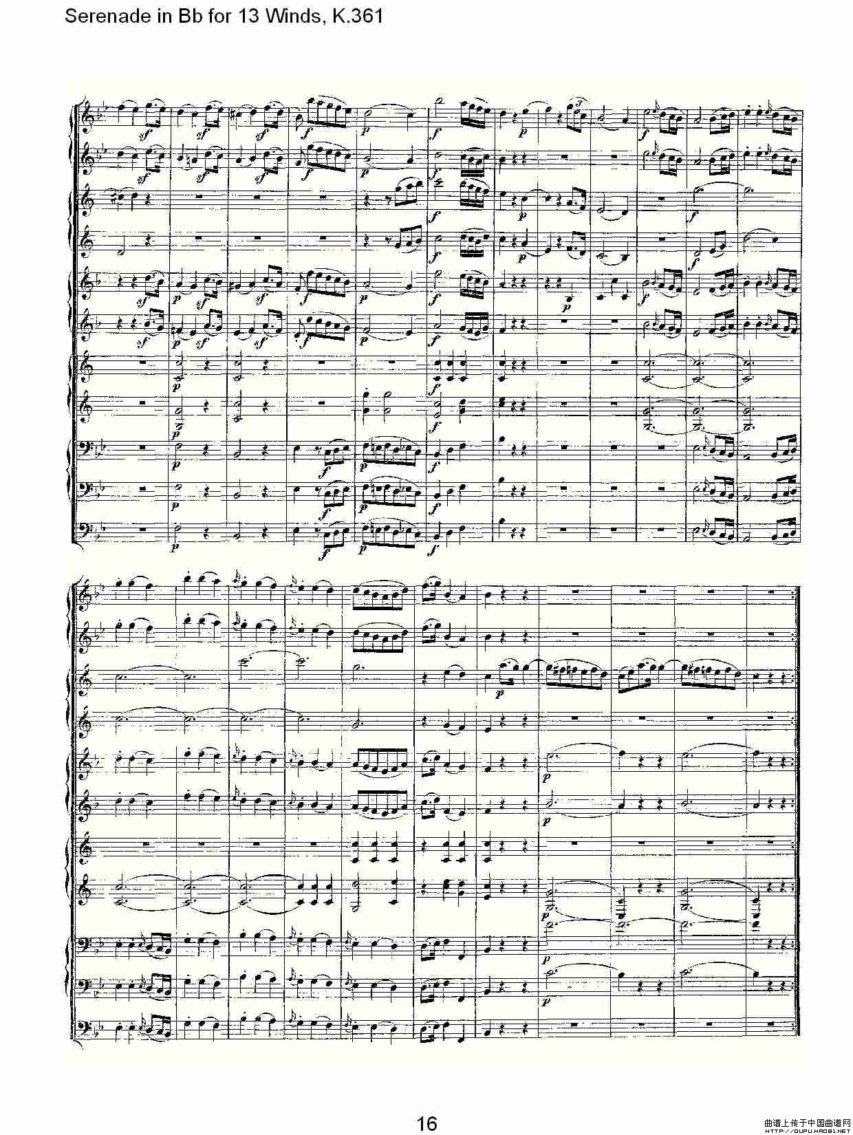 Serenade in Bb for 13 Winds, K.361(Bb调13管乐小夜曲, K.)相关五线谱