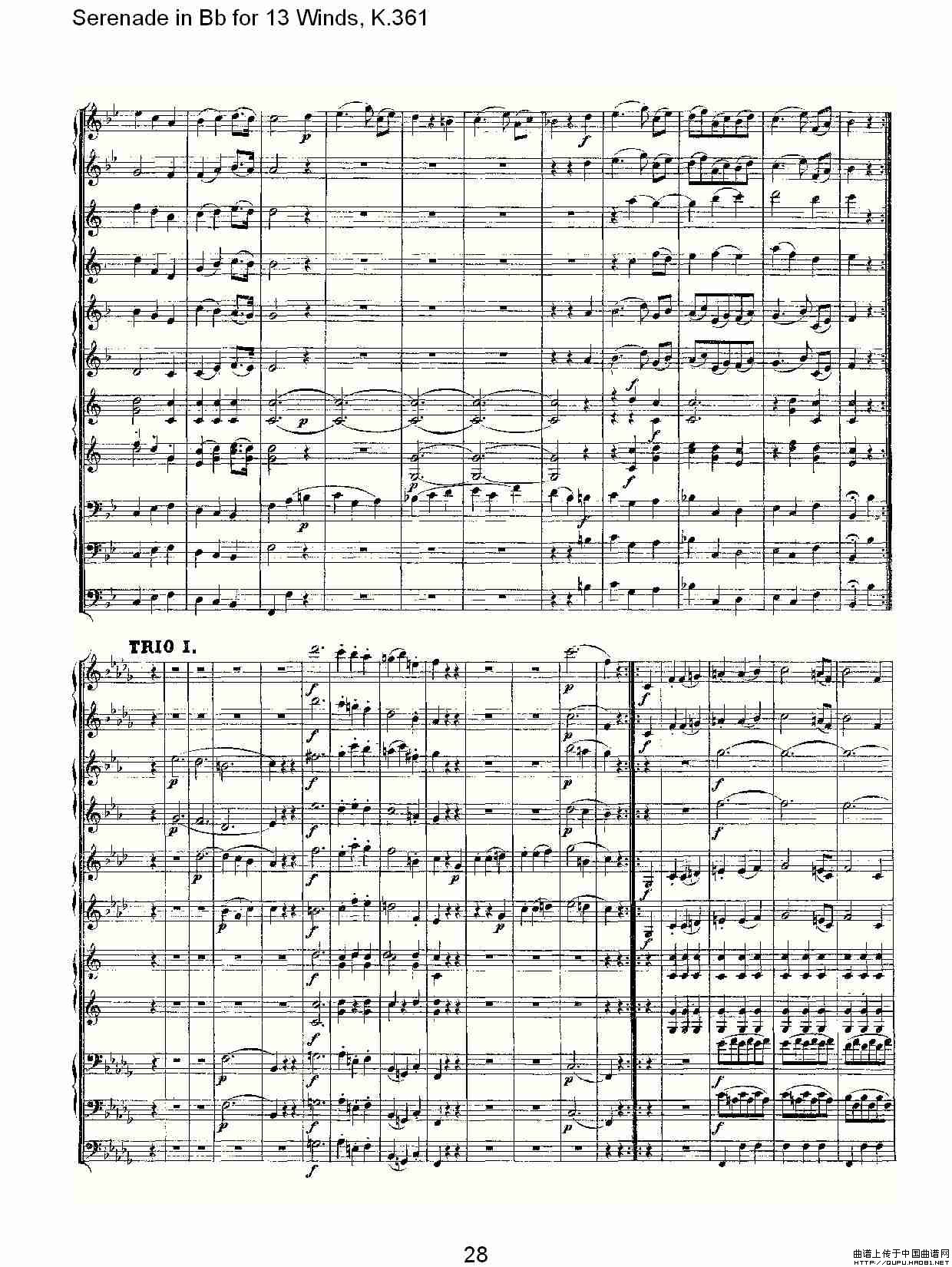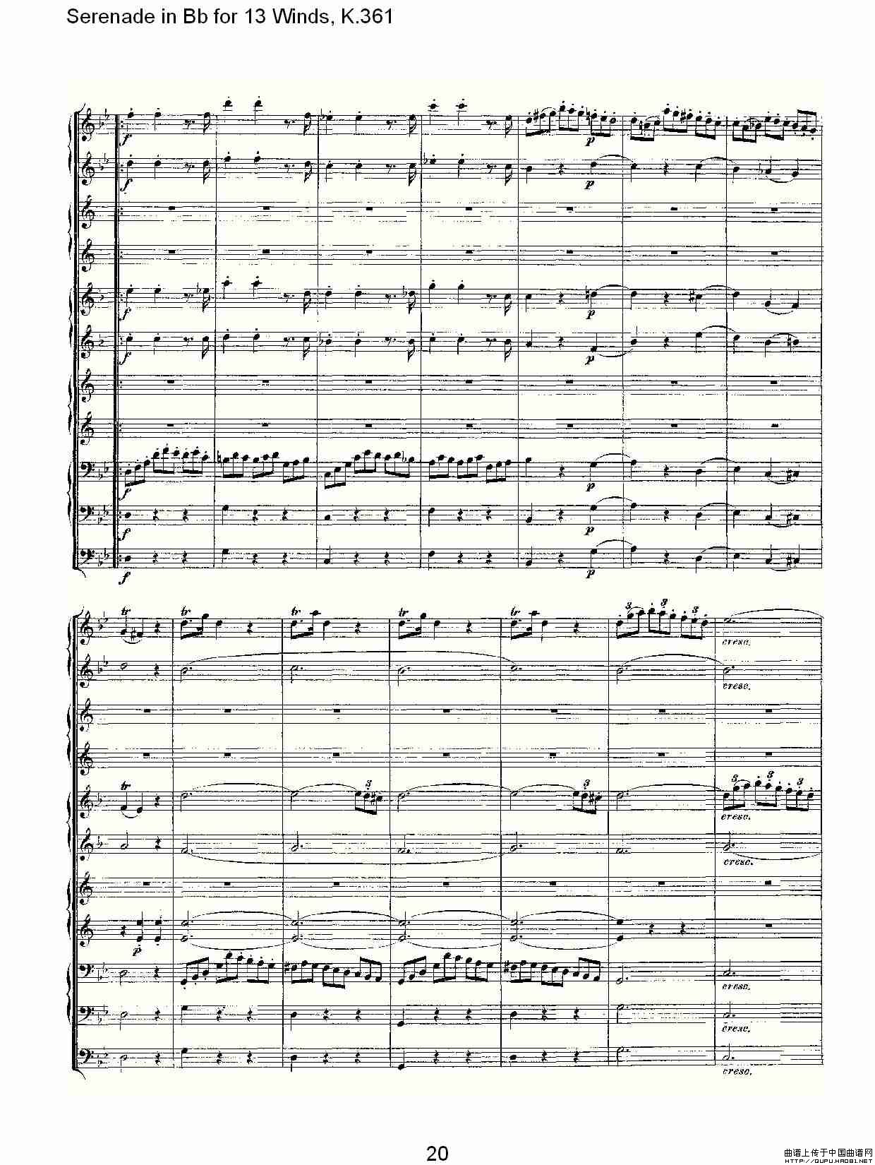 Serenade in Bb for 13 Winds, K.361(Bb调13管乐小夜曲, K.)