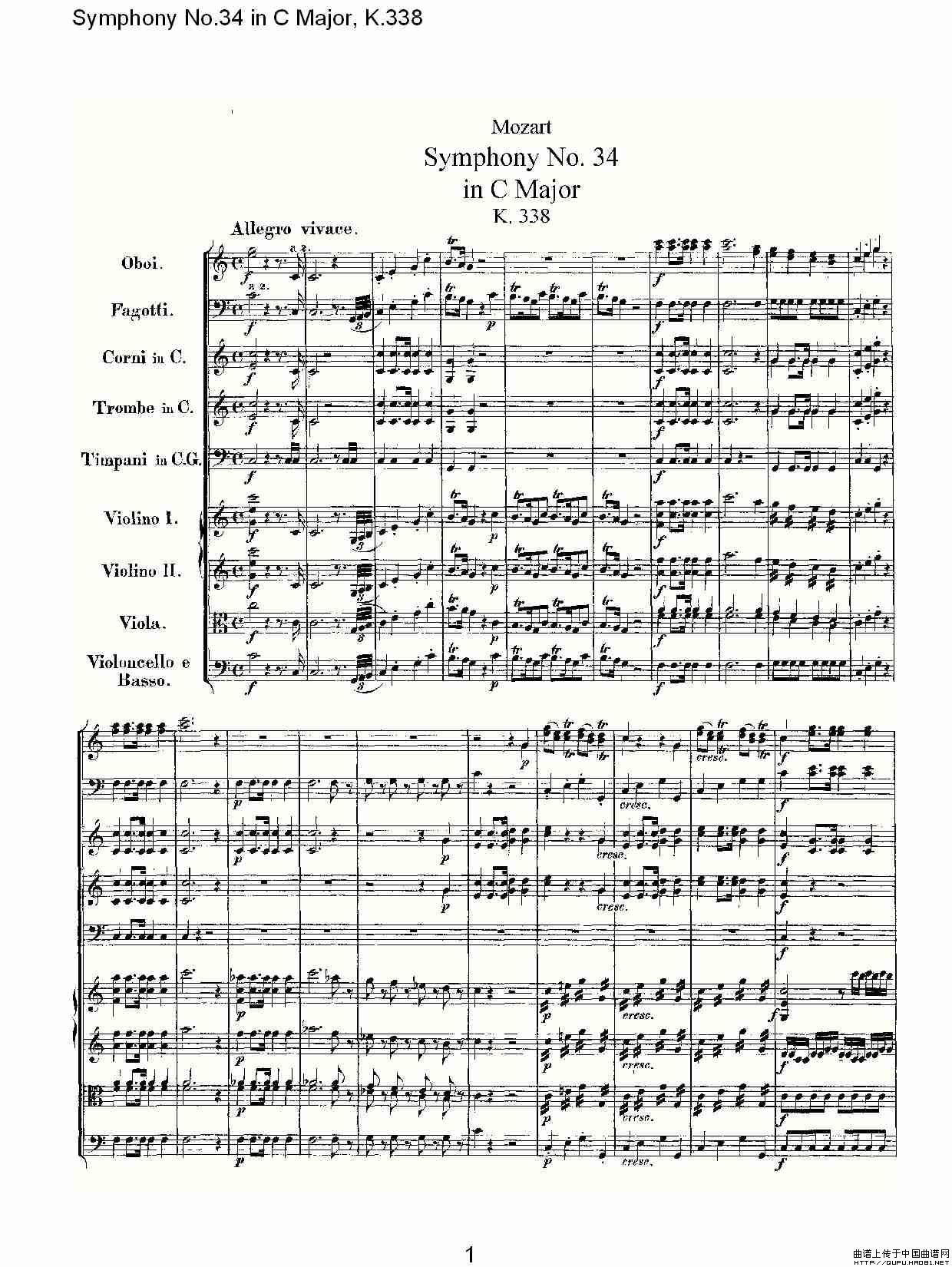Symphony No.34 in C Major, K.338(C大调第三十四交响曲K.338)相关五线谱