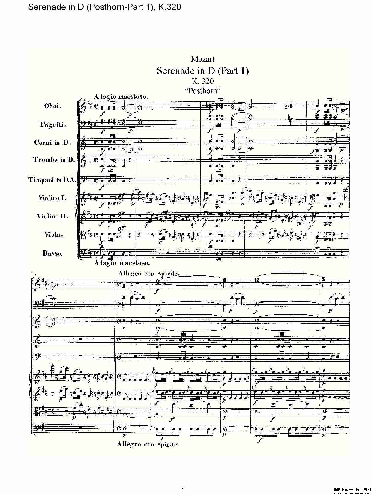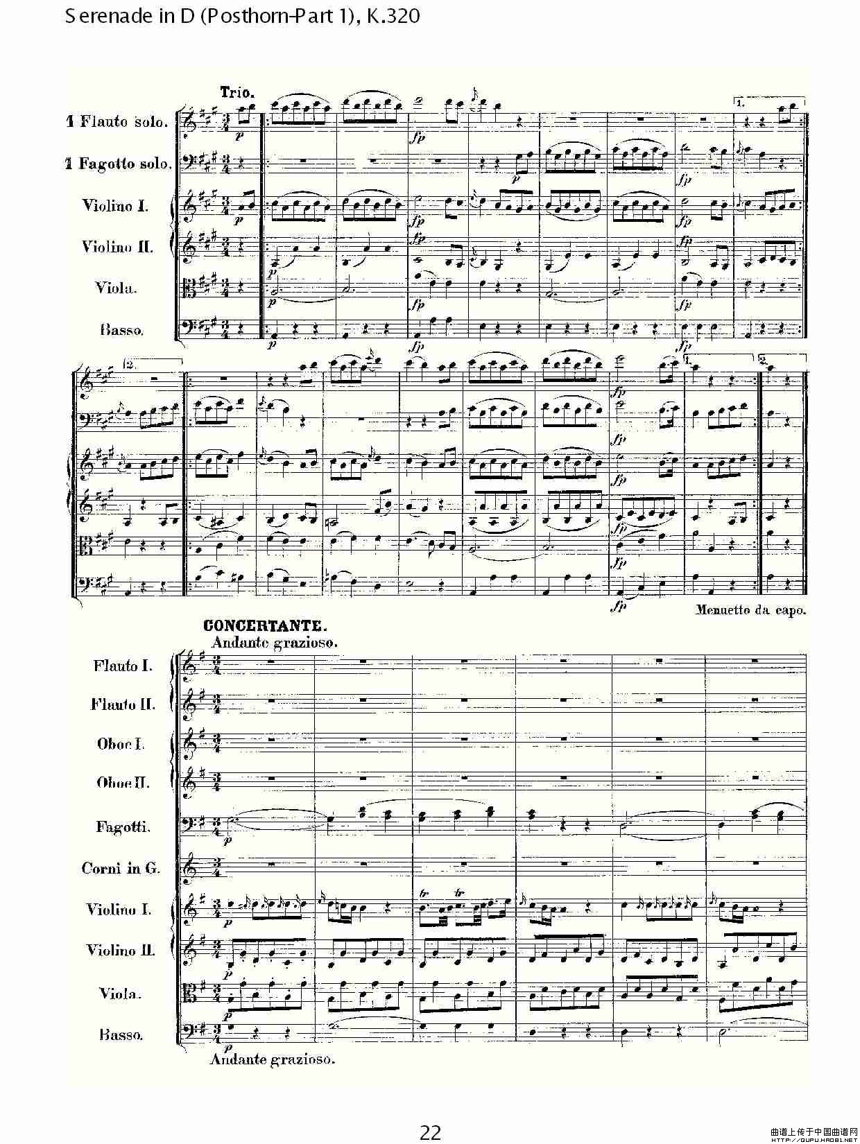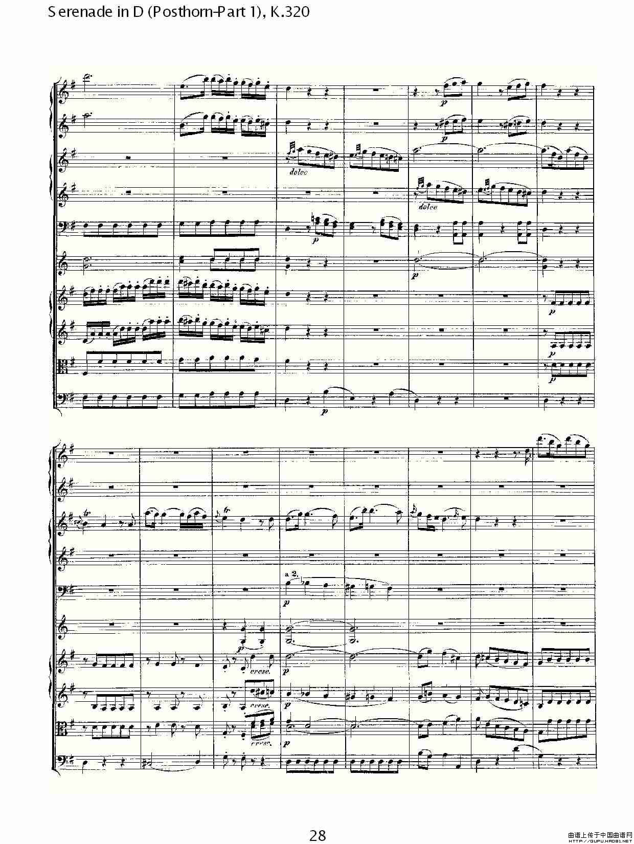D调小夜曲(Posthorn-第一部), K.32)相关五线谱