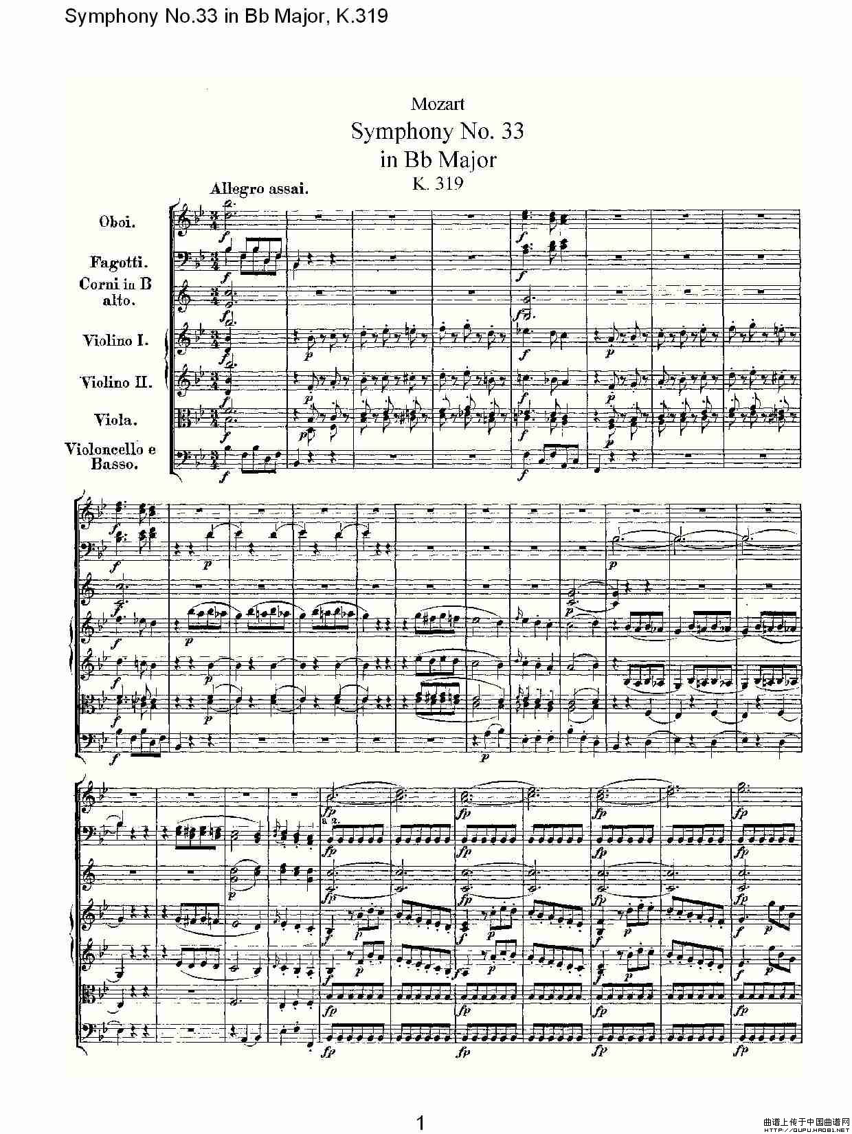 Symphony No.33 in Bb Major, K.319(Bb大调第三十三交响曲K.31)相关五线谱