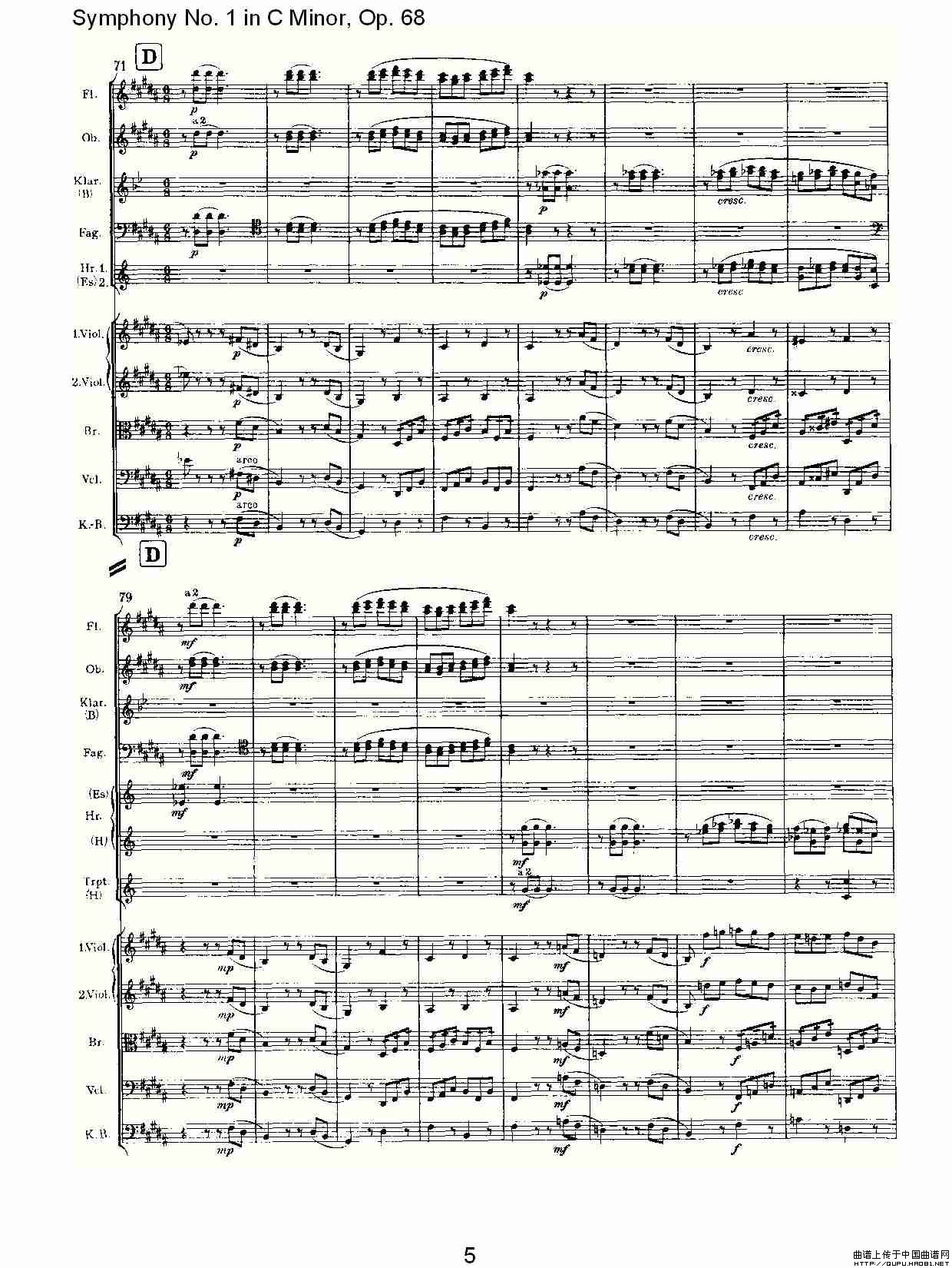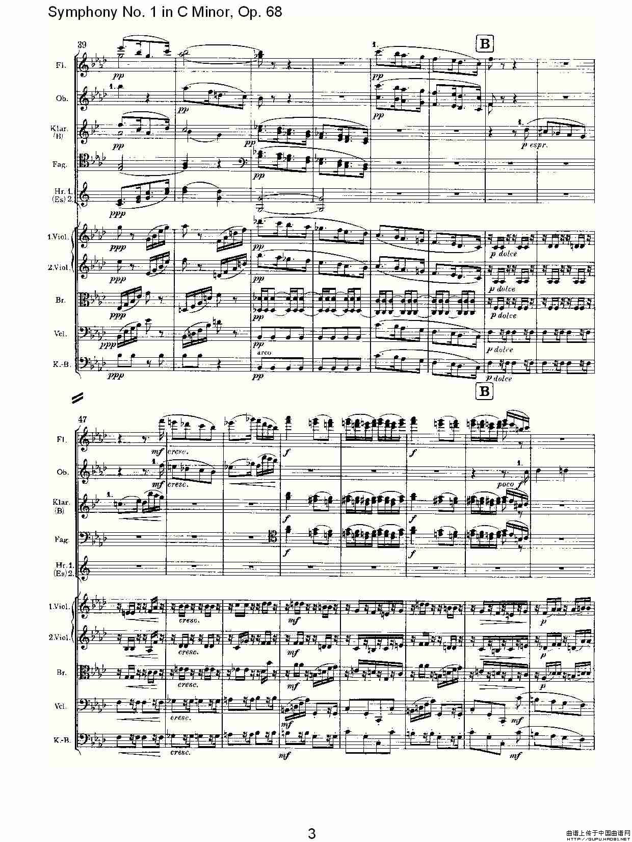 C小调第一交响曲, Op.68 第三乐章相关五线谱