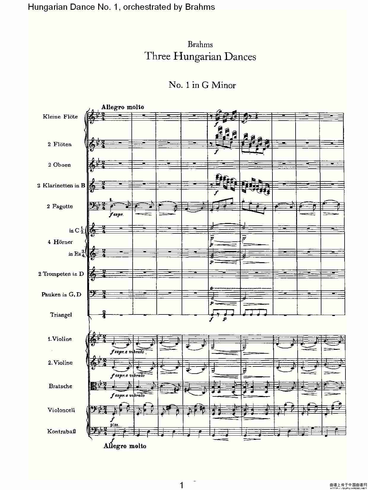 第一匈牙利舞曲 勃拉姆斯管弦乐曲式