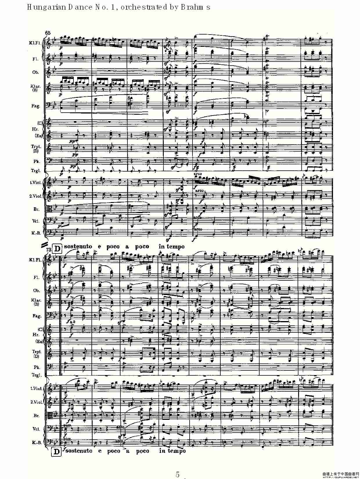 第一匈牙利舞曲 勃拉姆斯管弦乐曲式相关五线谱