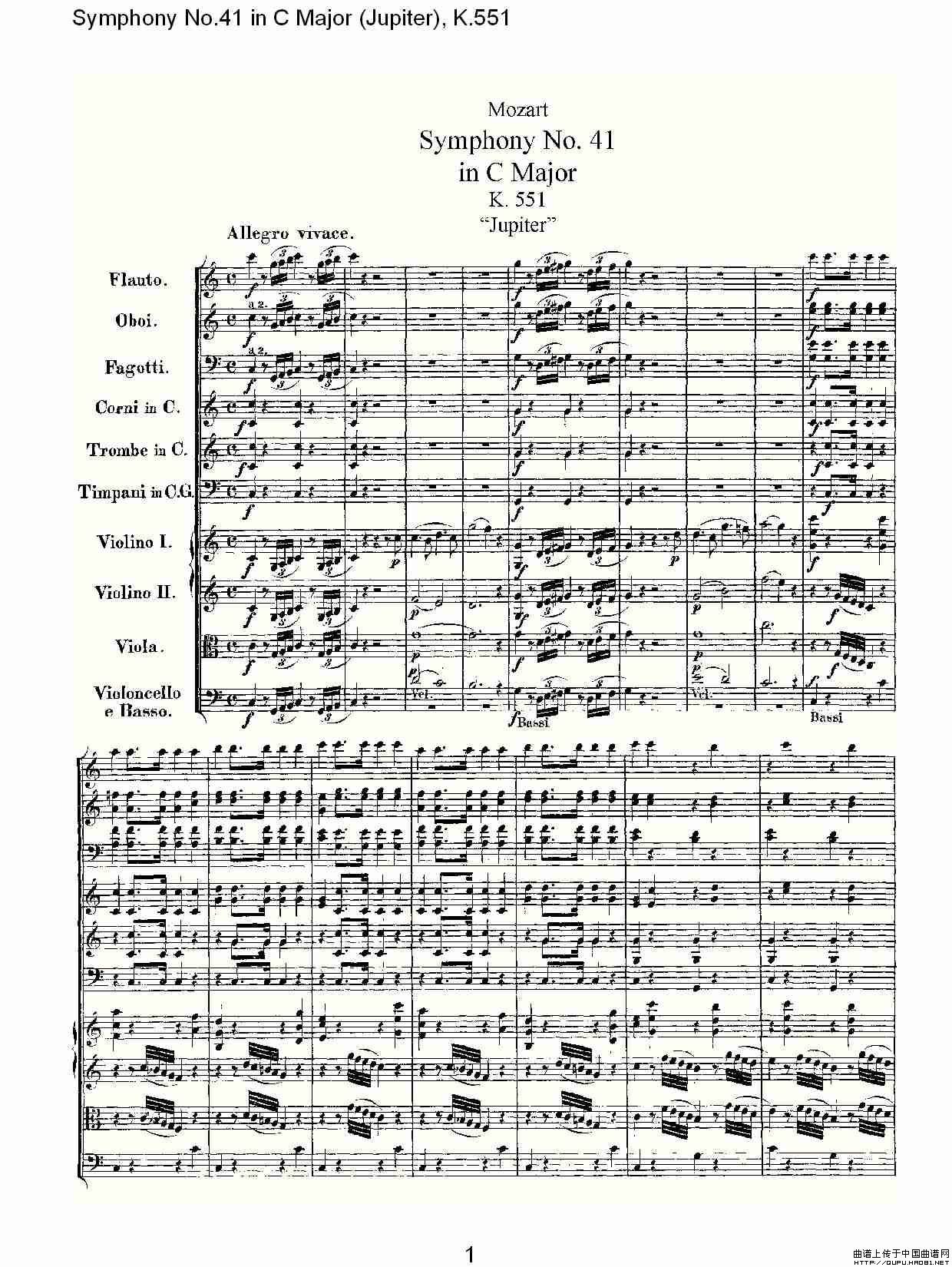 C大调第四十一交响曲K.551(一)相关五线谱
