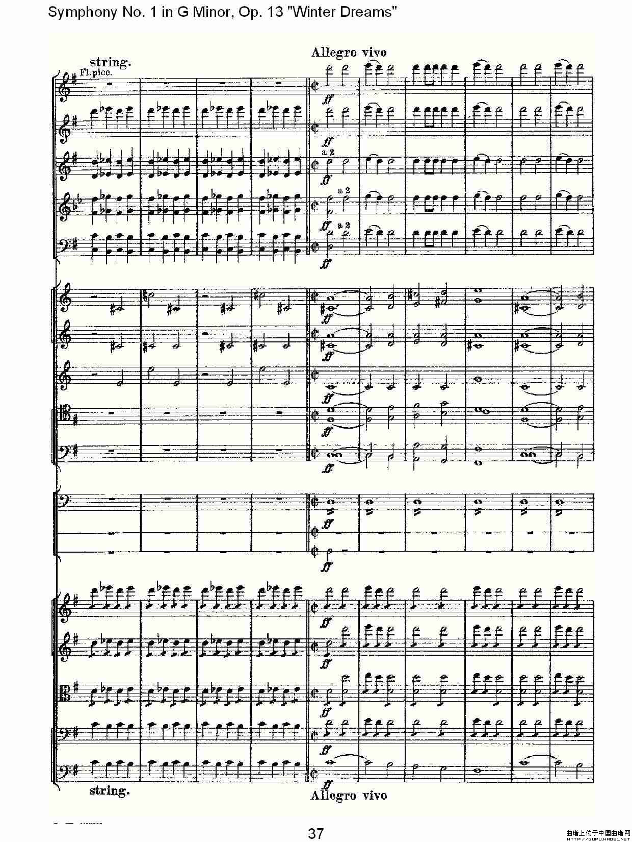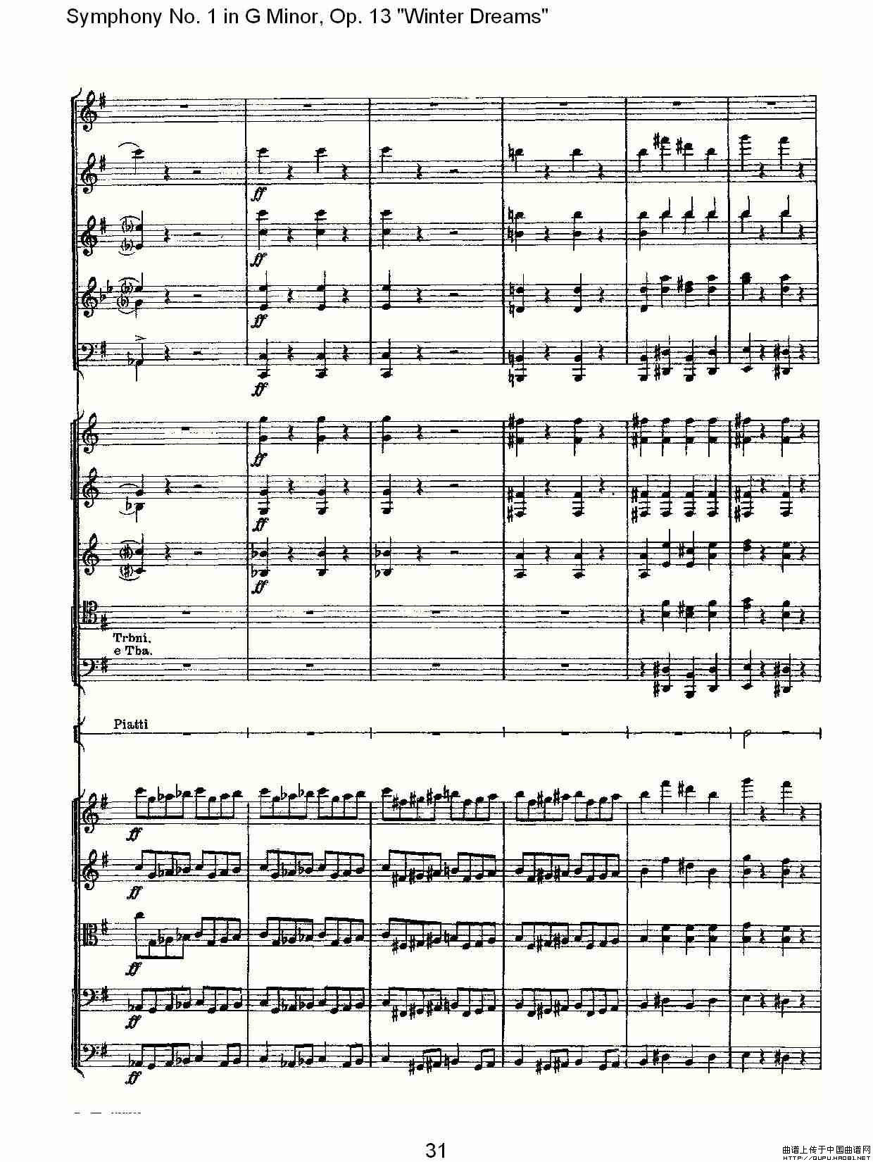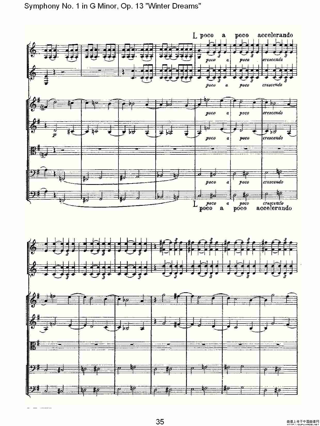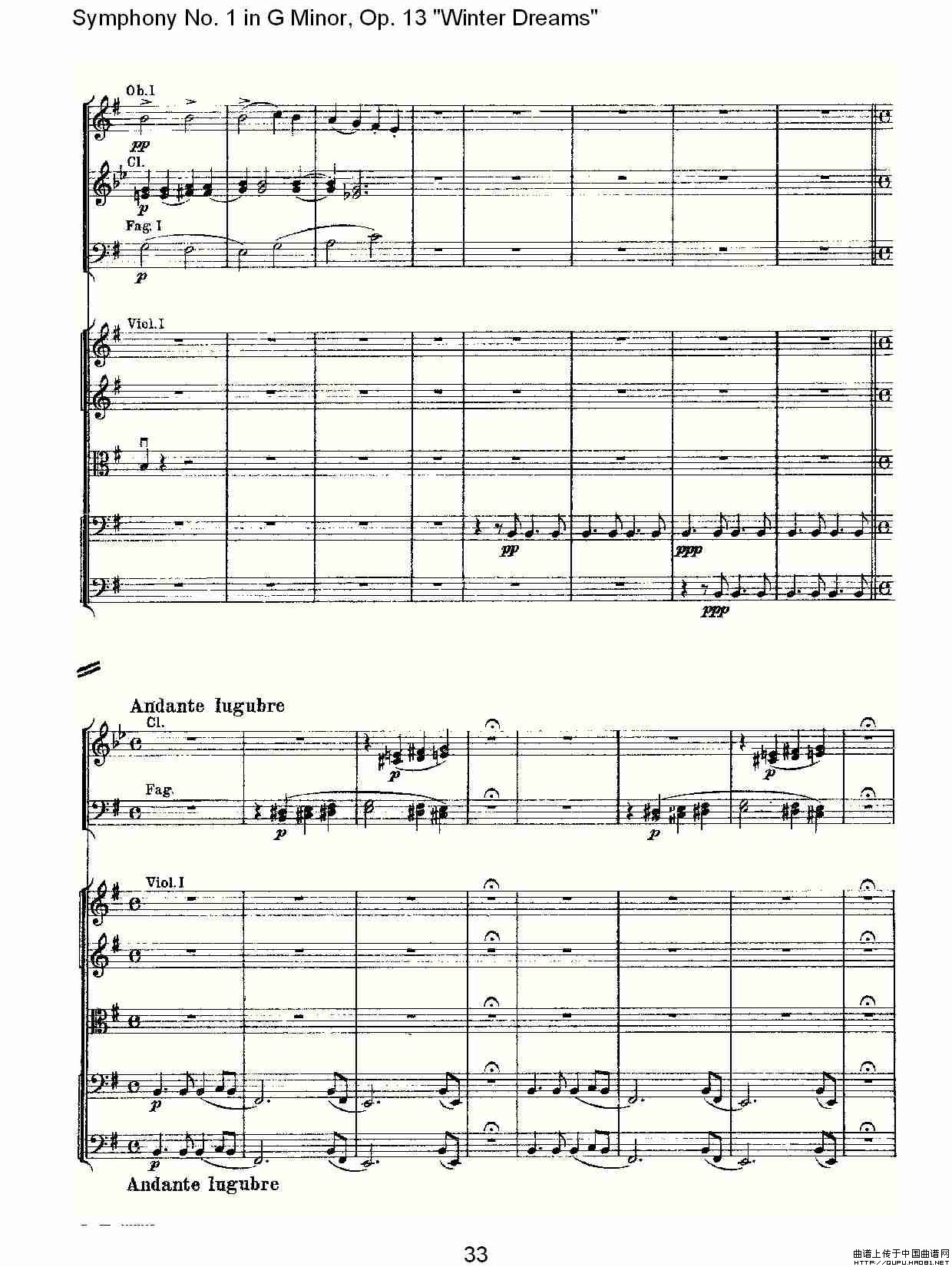 G小调第一交响曲, Op.13 冬天的梦幻Op.13第四乐章(二)相关五线谱