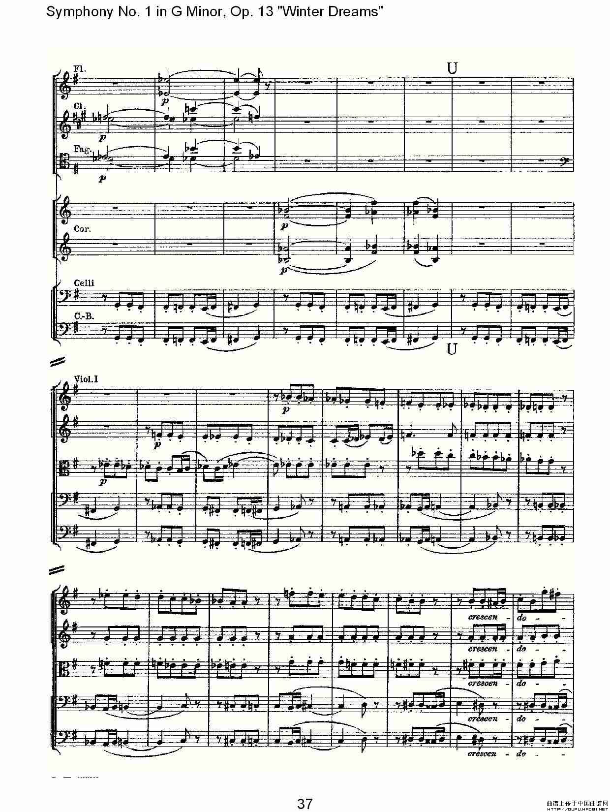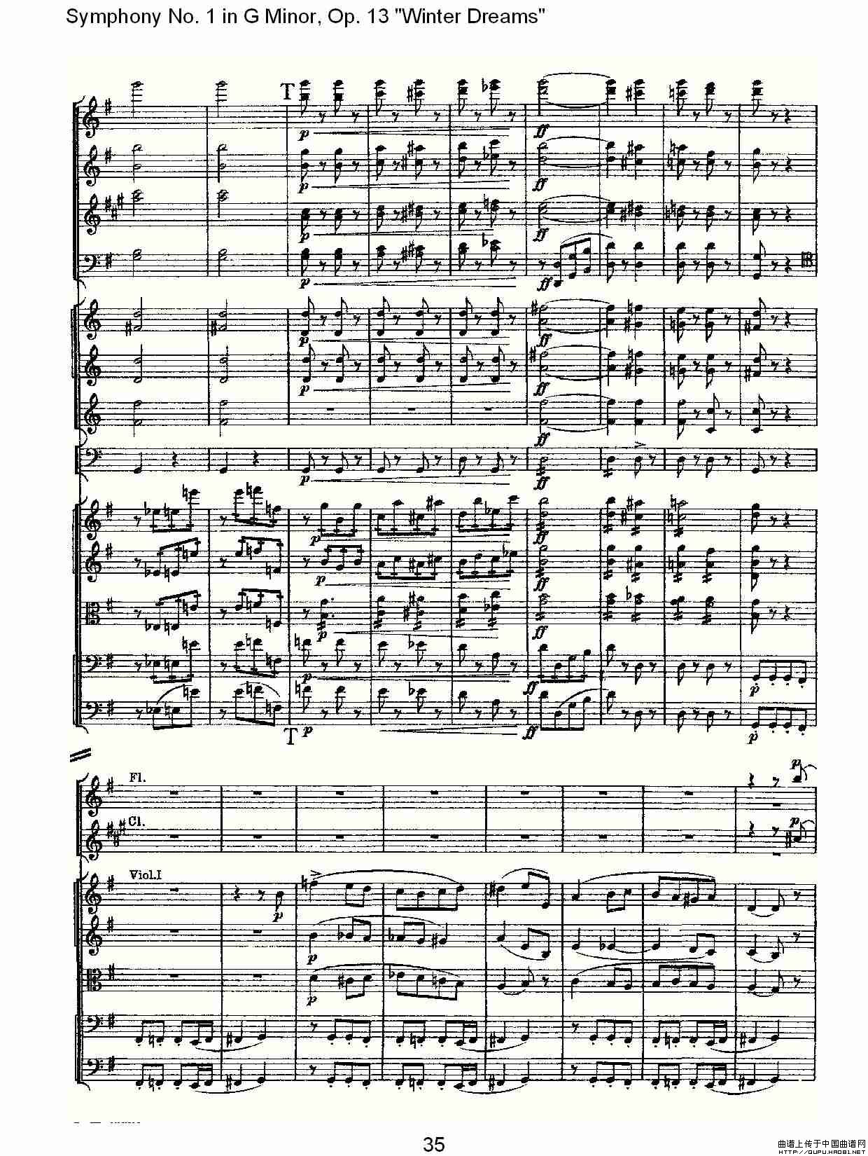 G小调第一交响曲, Op.13 冬天的梦幻Op.13第一乐章(二)相关五线谱