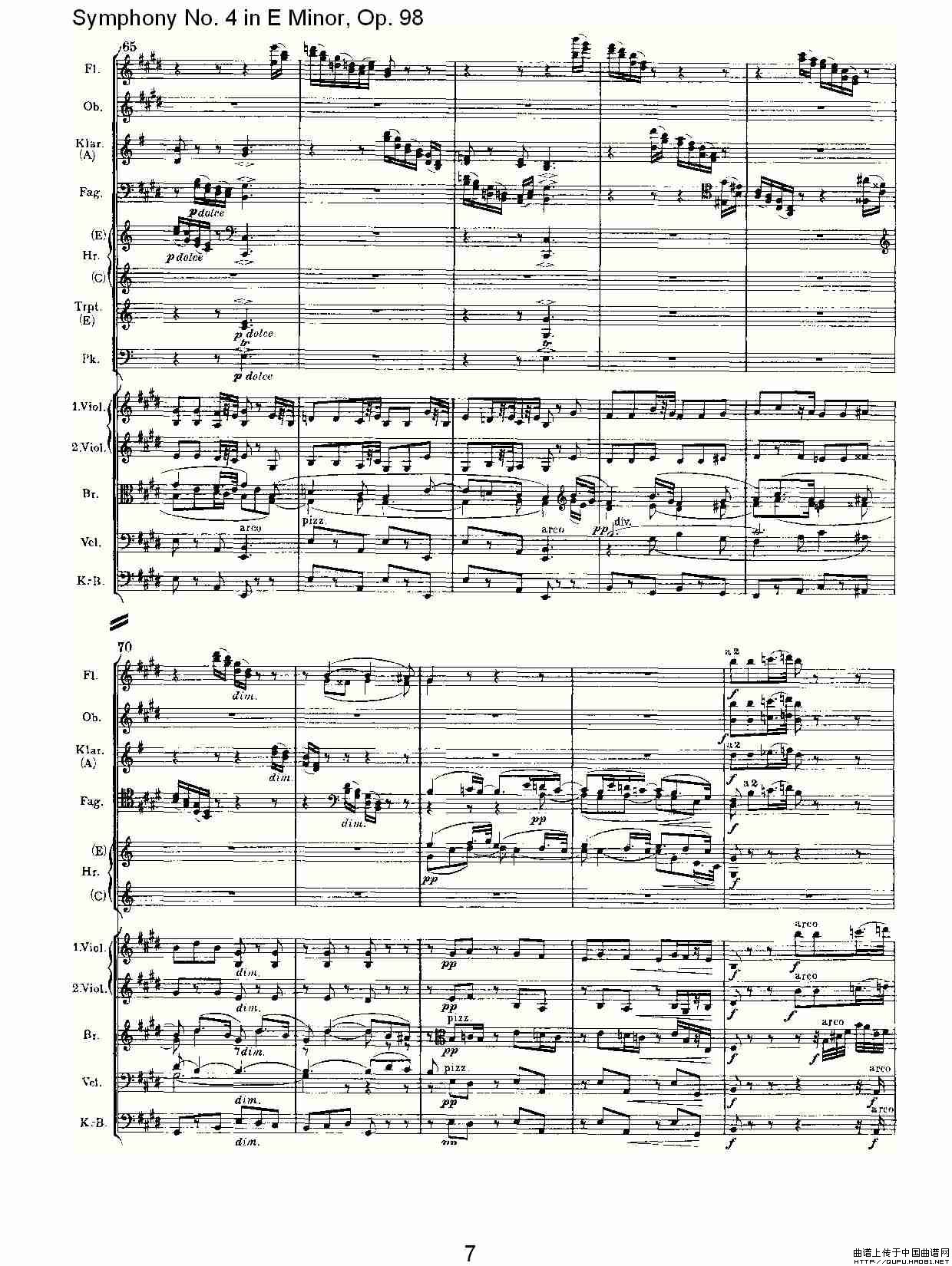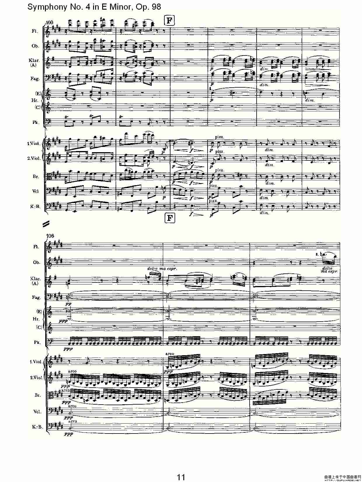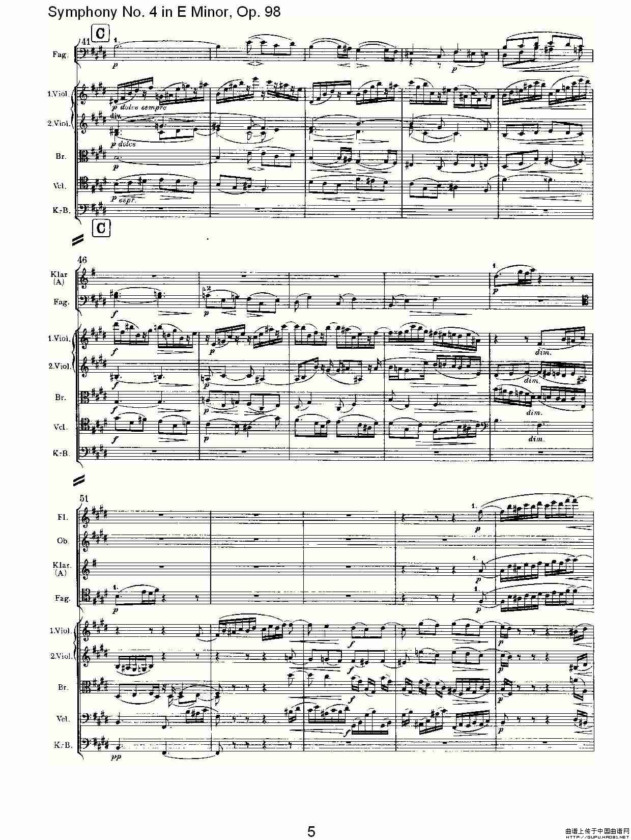 E小调第四交响曲, Op.98 第二乐章相关五线谱