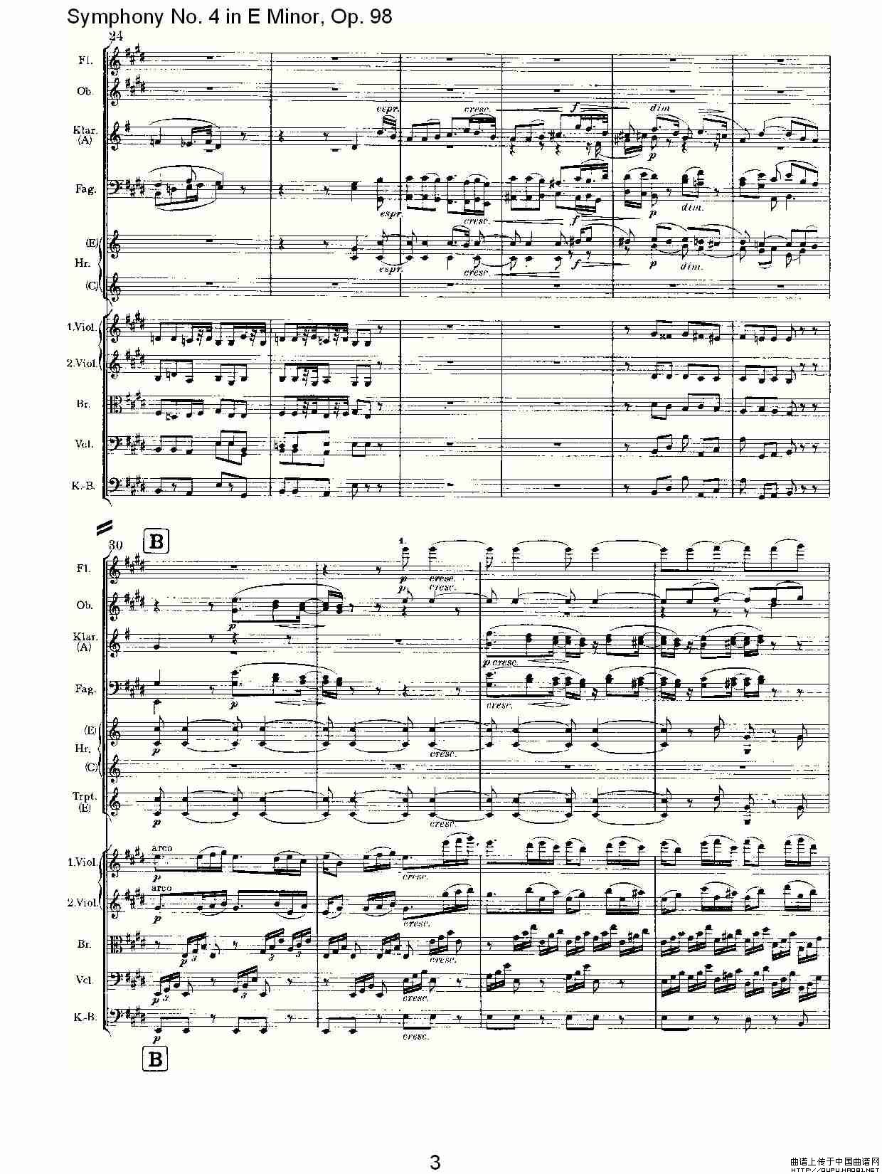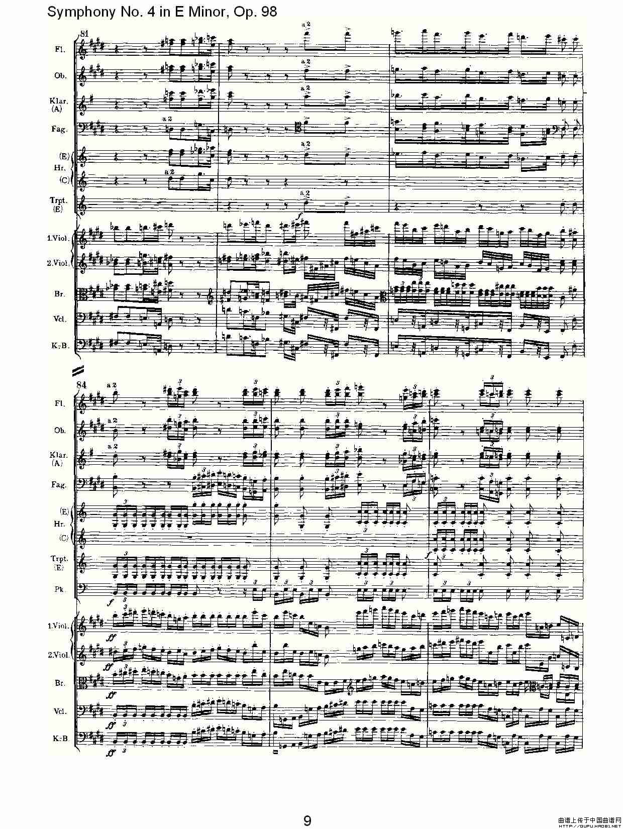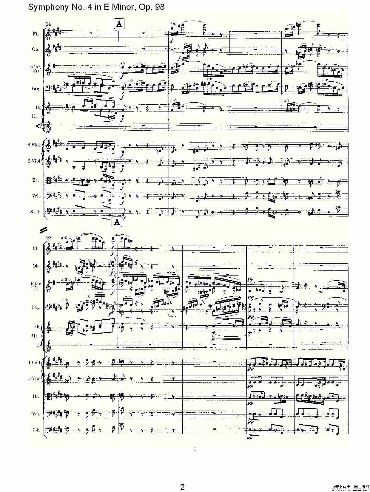 E小调第四交响曲, Op.98 第二乐章相关五线谱