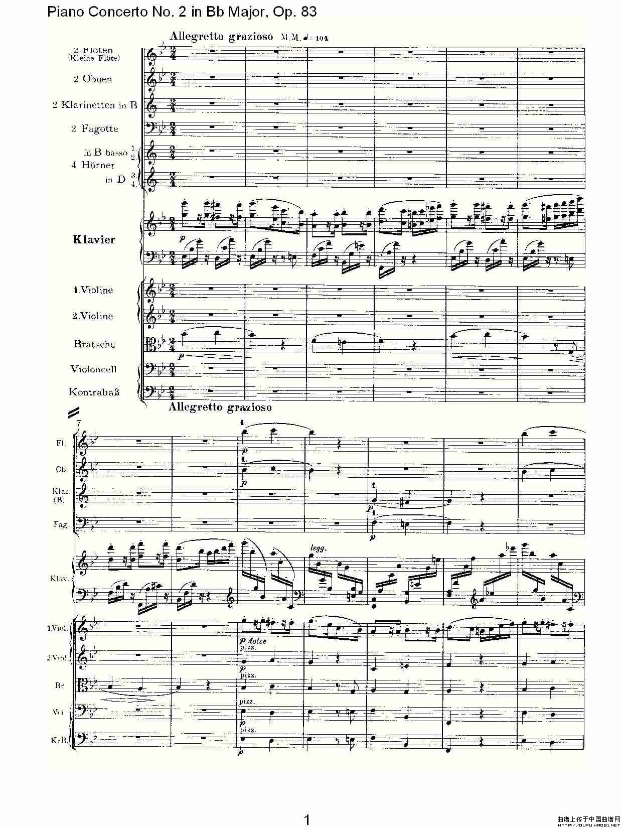 Bb大调钢琴第二协奏曲, Op.83第四乐章相关五线谱