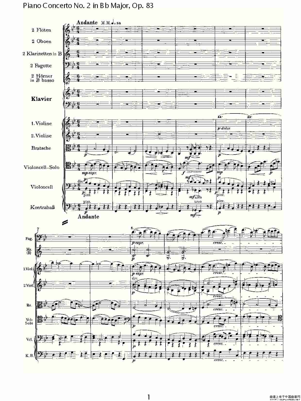 Bb大调钢琴第二协奏曲, Op.83第三乐章相关五线谱