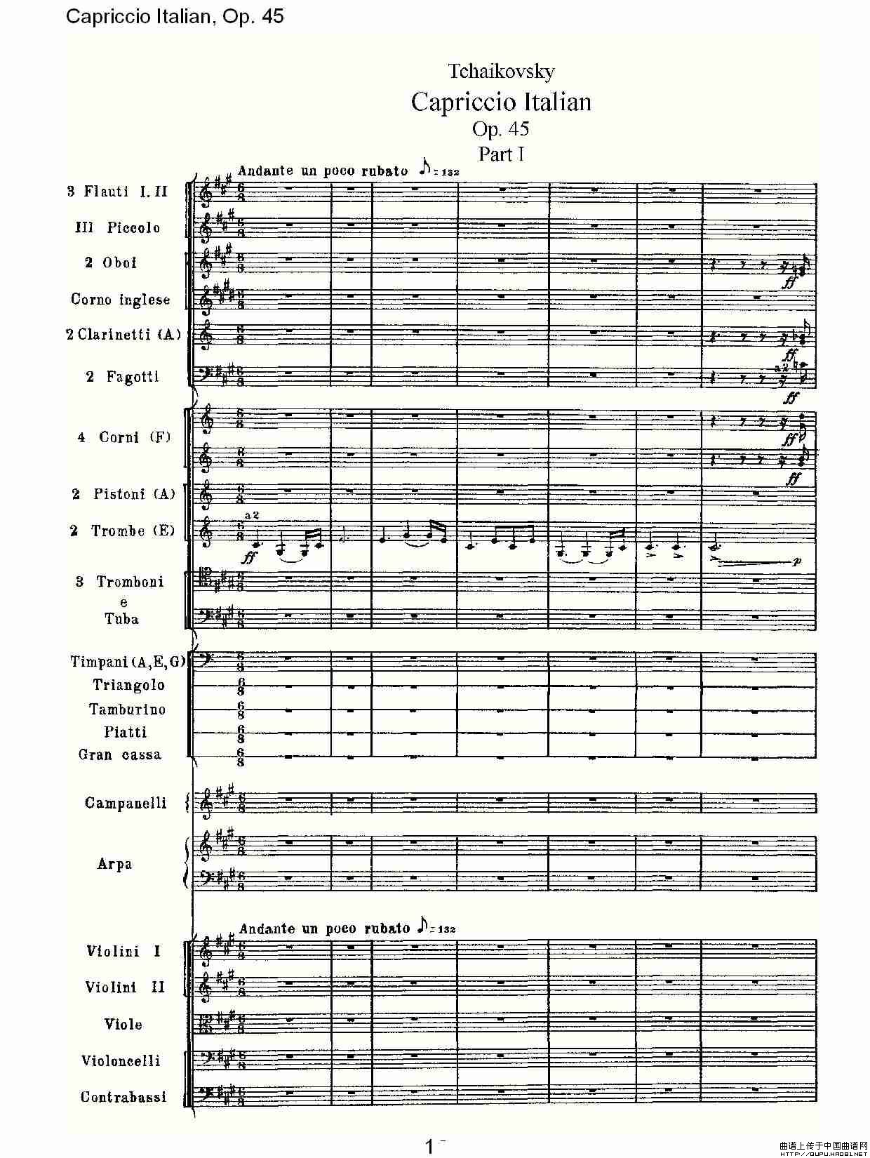 Capriccio Italian, Op. 45 意大利幻想曲, Op. 45相关五线谱
