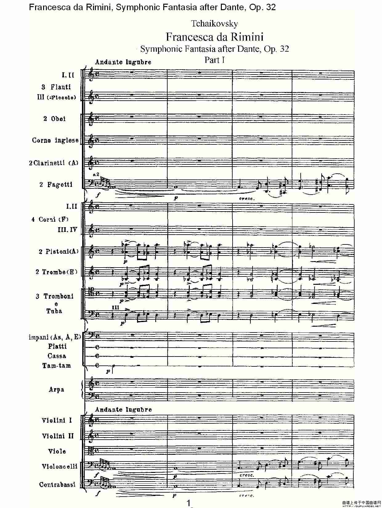 Francesca da Rimini, 但丁幻想曲Op.32 第一部(一)相关五线谱