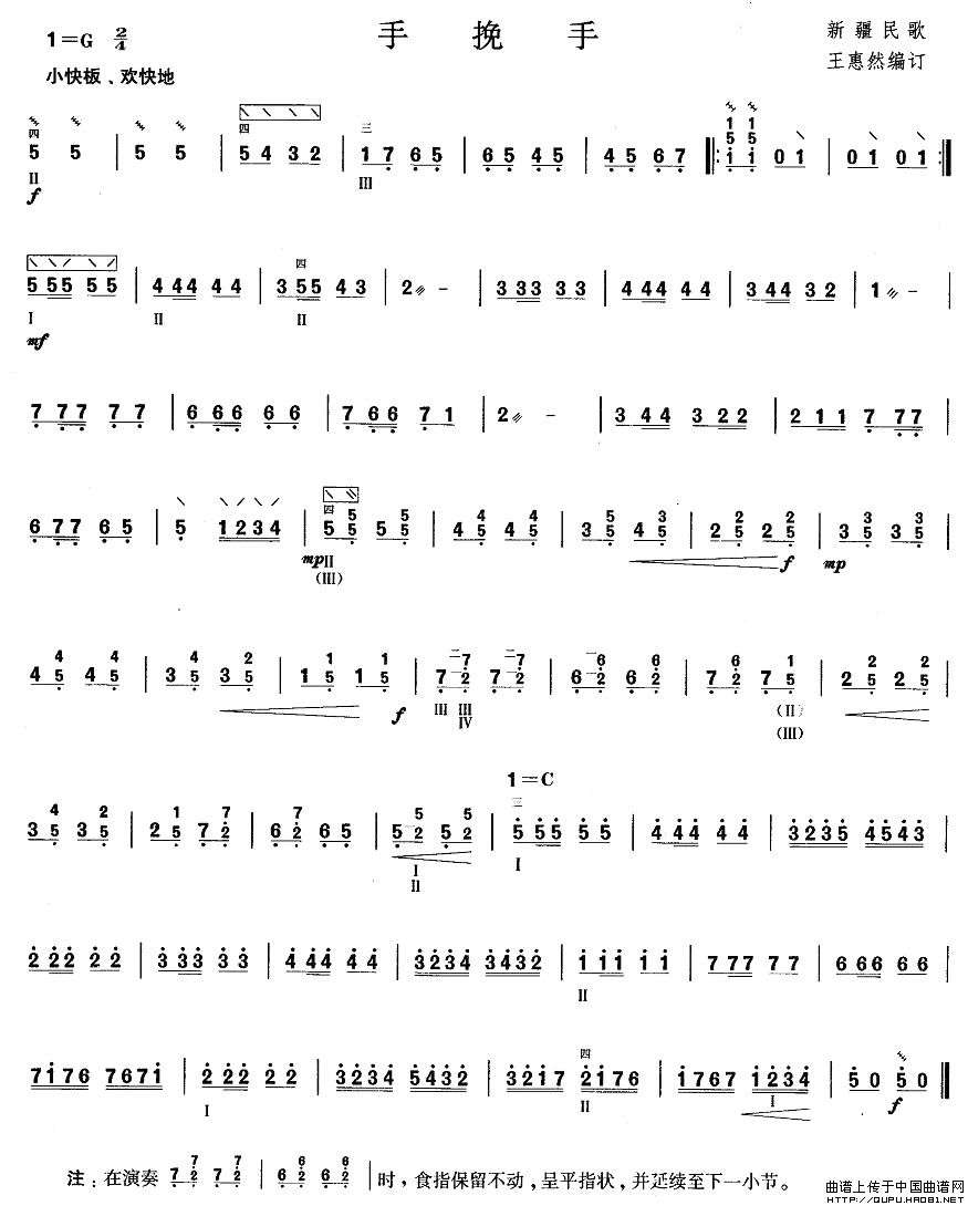 柳琴考级曲目一级:手挽手相关五线谱