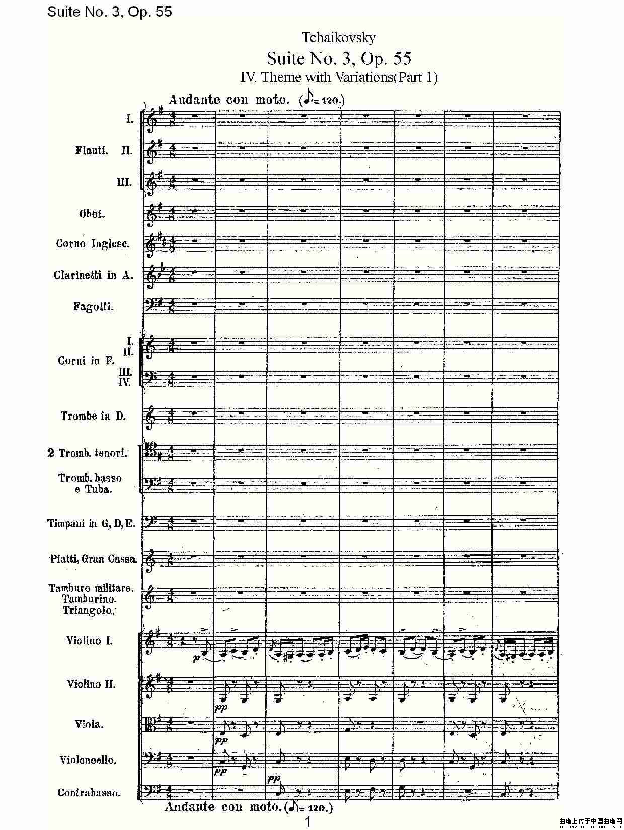 Suite No. 3, Op.55 第三套曲,Op.55第四乐章第一部(一)相关五线谱