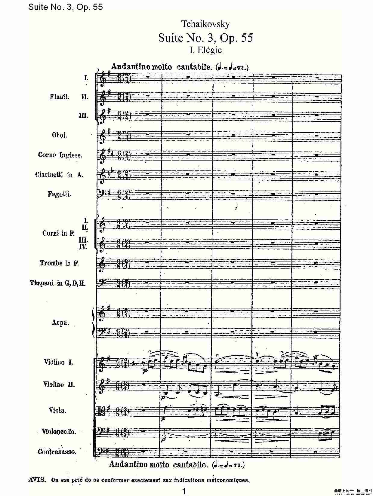 Suite No. 3, Op.55 第三套曲,Op.55第一乐章相关五线谱