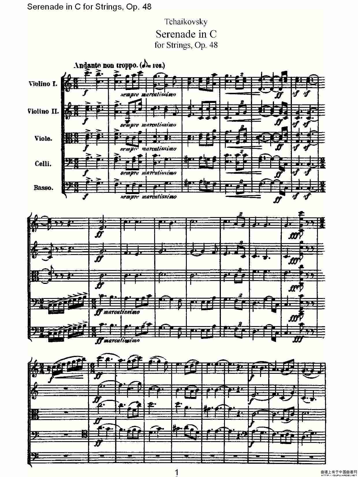 Serenade in C for Strings, Op.48 C调弦乐小夜曲,Op.48(一)相关五线谱