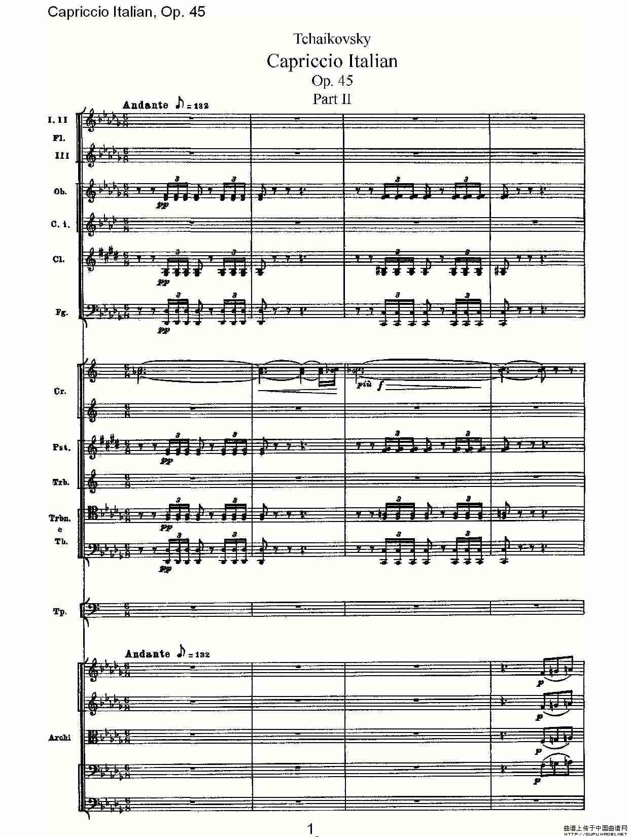 Capriccio Italian, Op. 45 意大利幻想曲, Op. 45相关五线谱