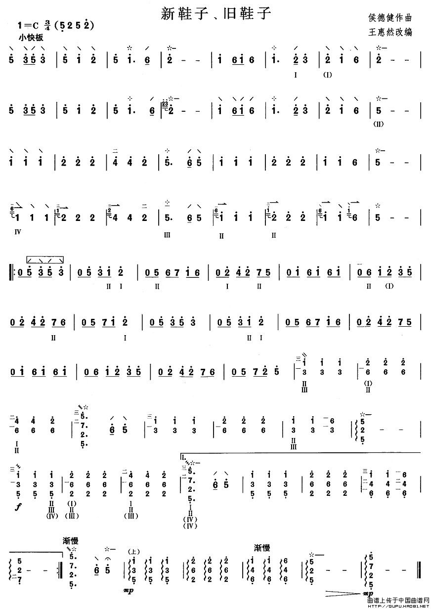 柳琴考级曲目二级:新鞋子、旧鞋子相关五线谱