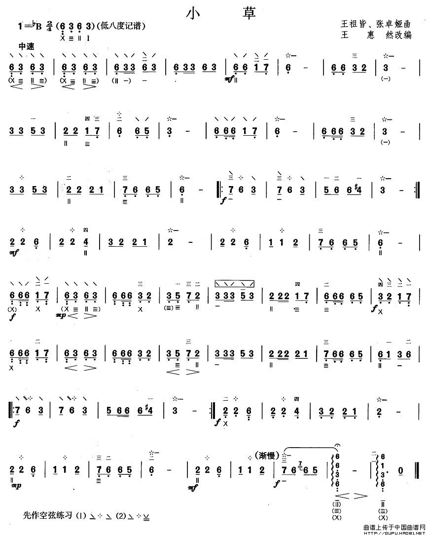 柳琴考级曲目二级:小草相关五线谱