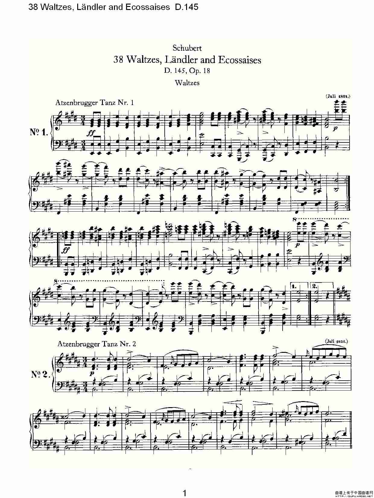 38华尔兹舞曲, Ländler and Ecossaises D.145