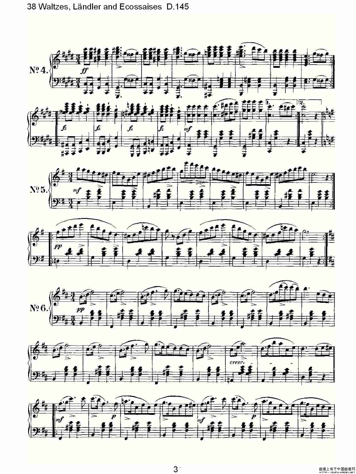 38华尔兹舞曲, Ländler and Ecossaises D.145相关五线谱