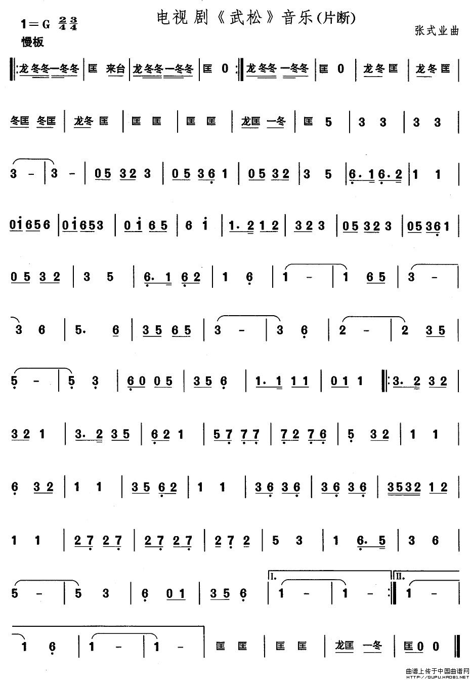 张式业曲谱推荐