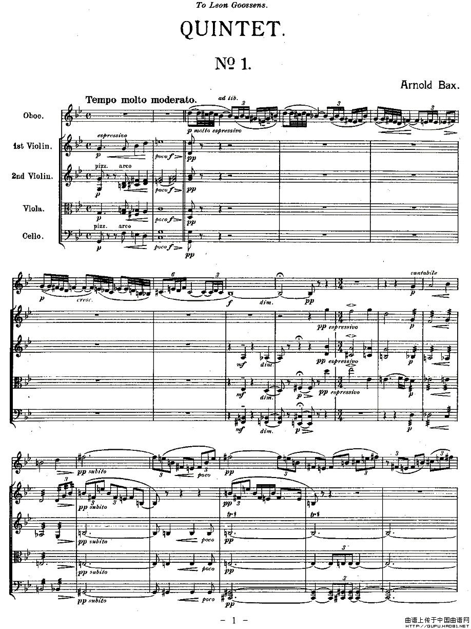 QUINTET.No1.(双簧管+弦乐五重奏第一乐章、总谱)相关五线谱