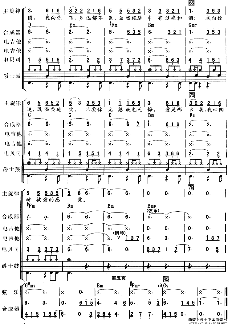 雨蝶(电视剧《还珠格格》主题曲、乐队总谱)相关五线谱