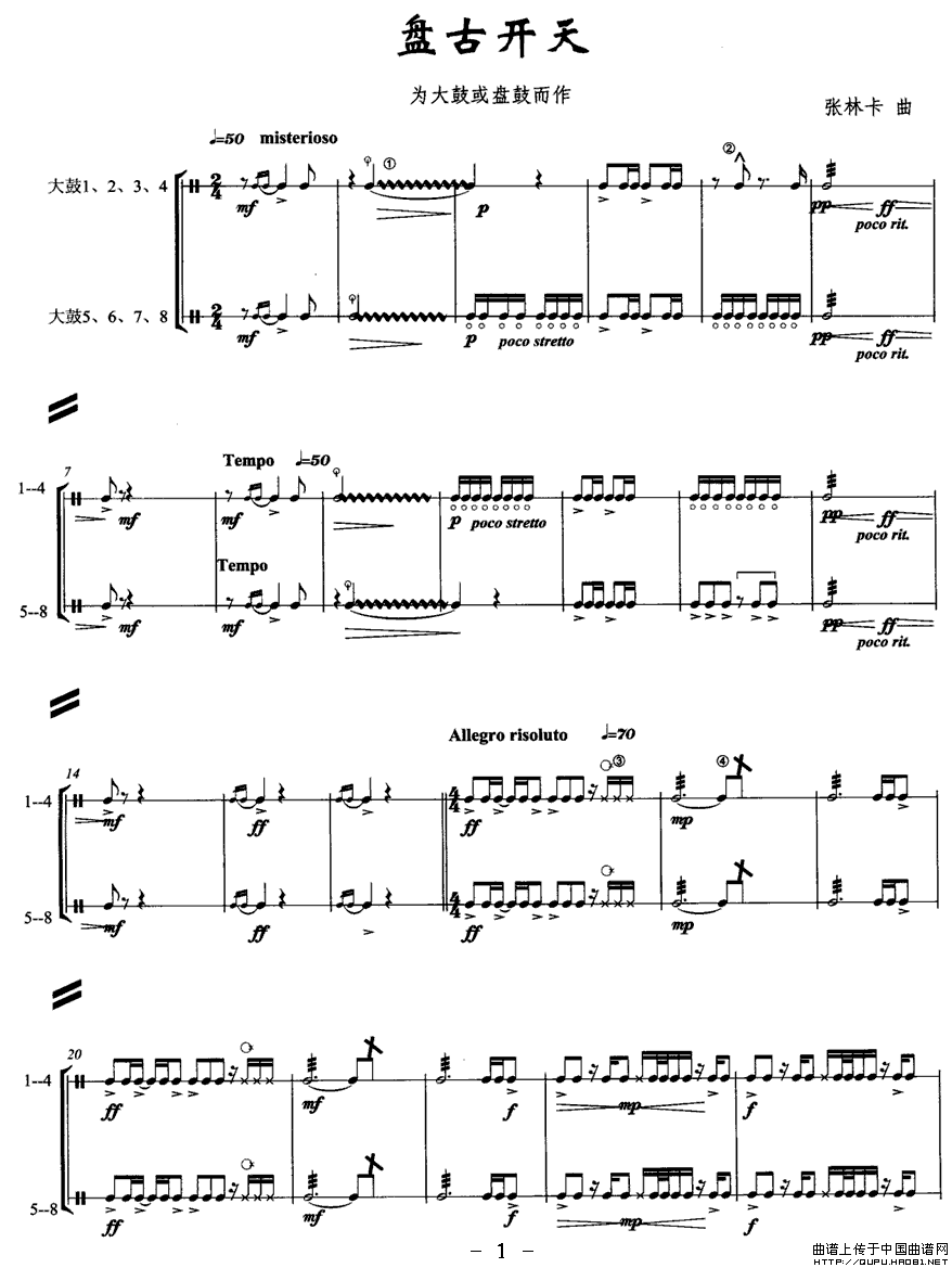 康定情歌(打击乐·大镲、大鼓、大锣分谱)