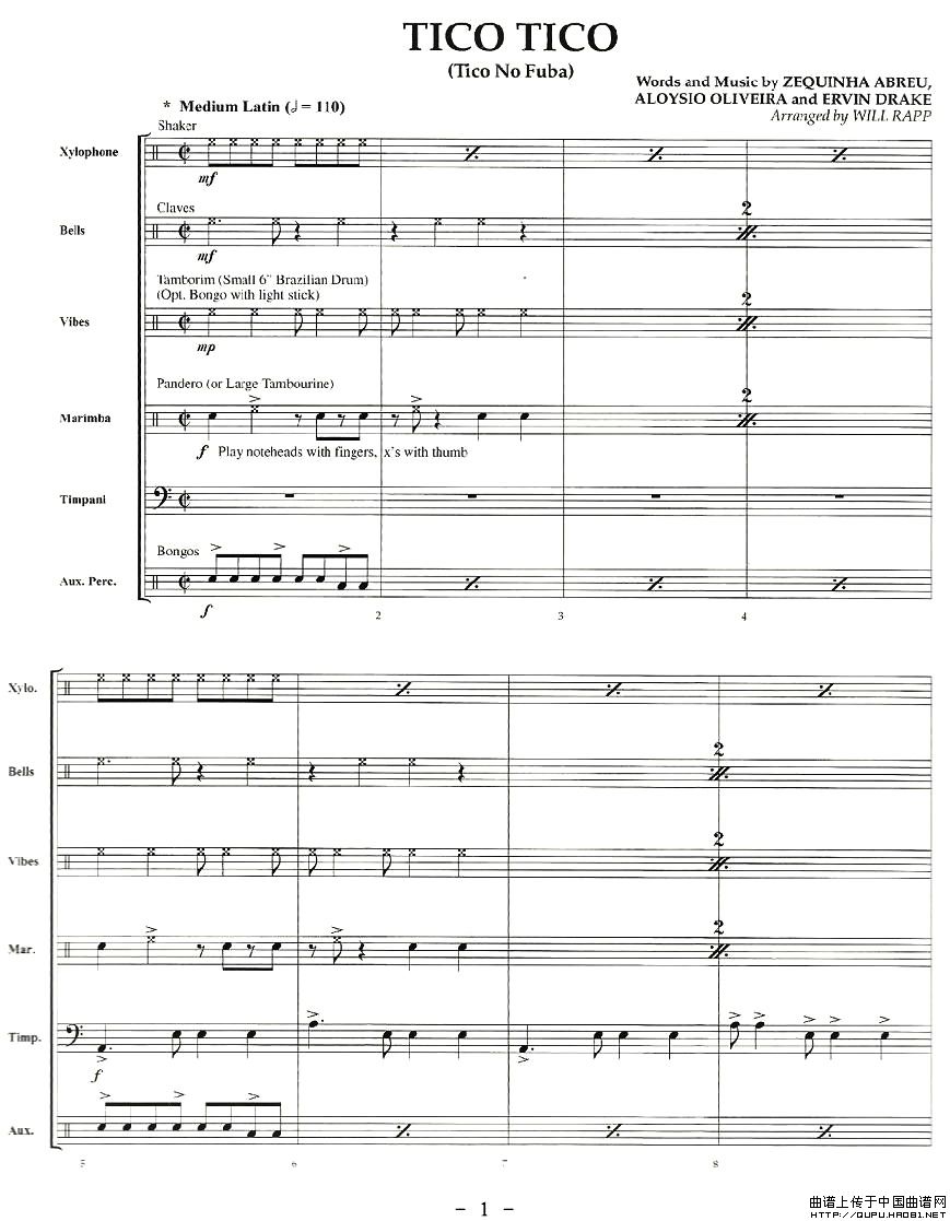 TICO TICO(总谱)相关五线谱