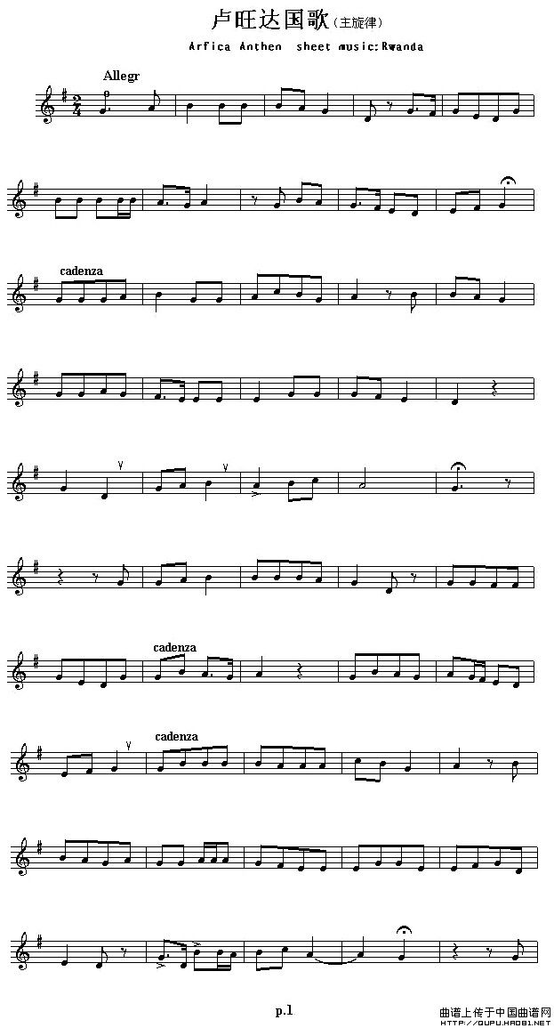 各国国歌主旋律:卢旺达(Arfica Anthem sheet musec:Rwanda)