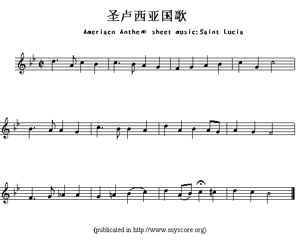 各国国歌主旋律:圣卢西亚(Ameriacn Anthem sheet music:Saint Lu)